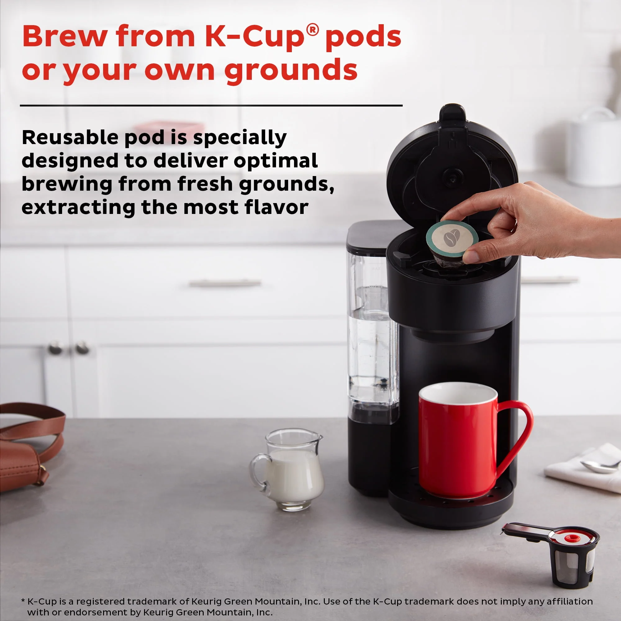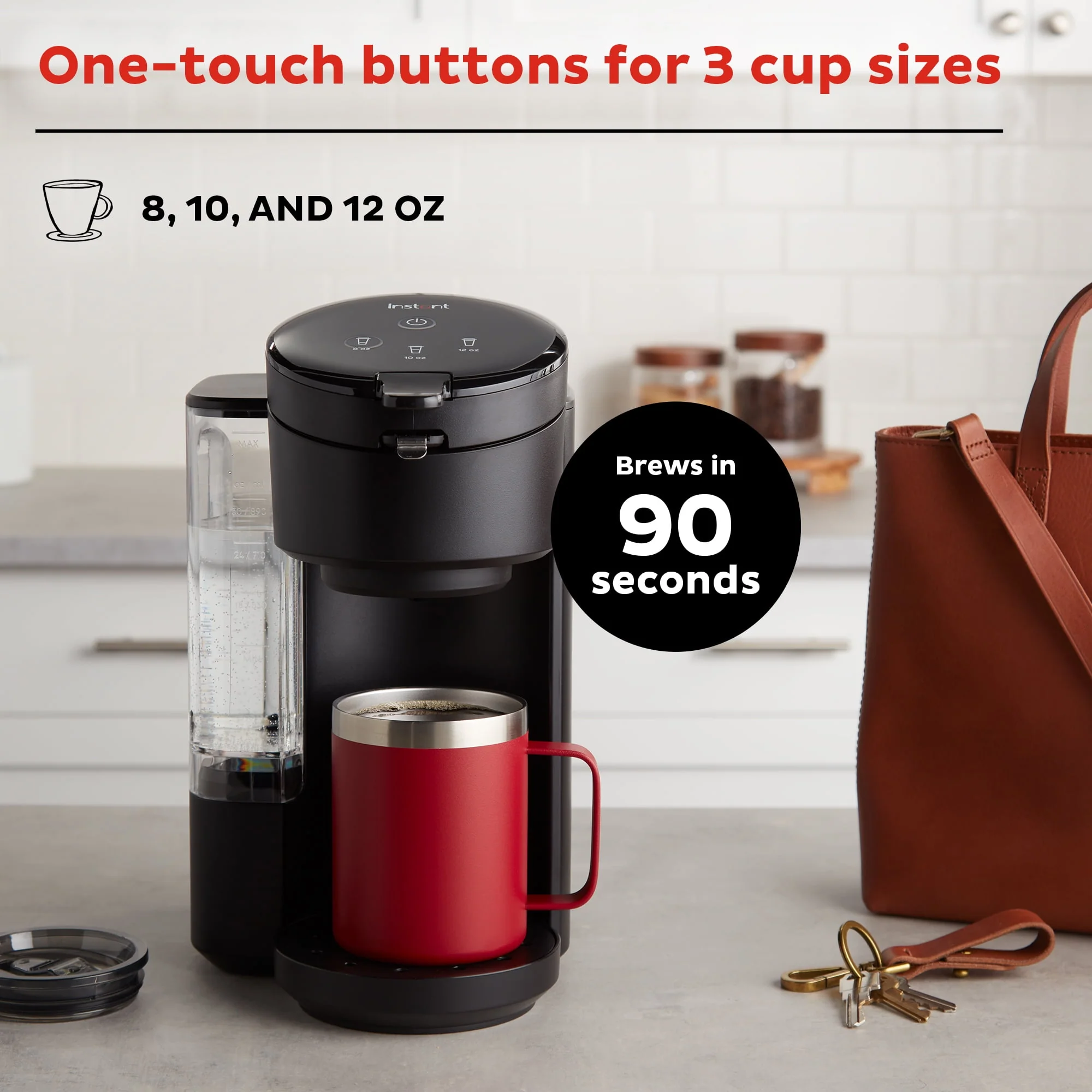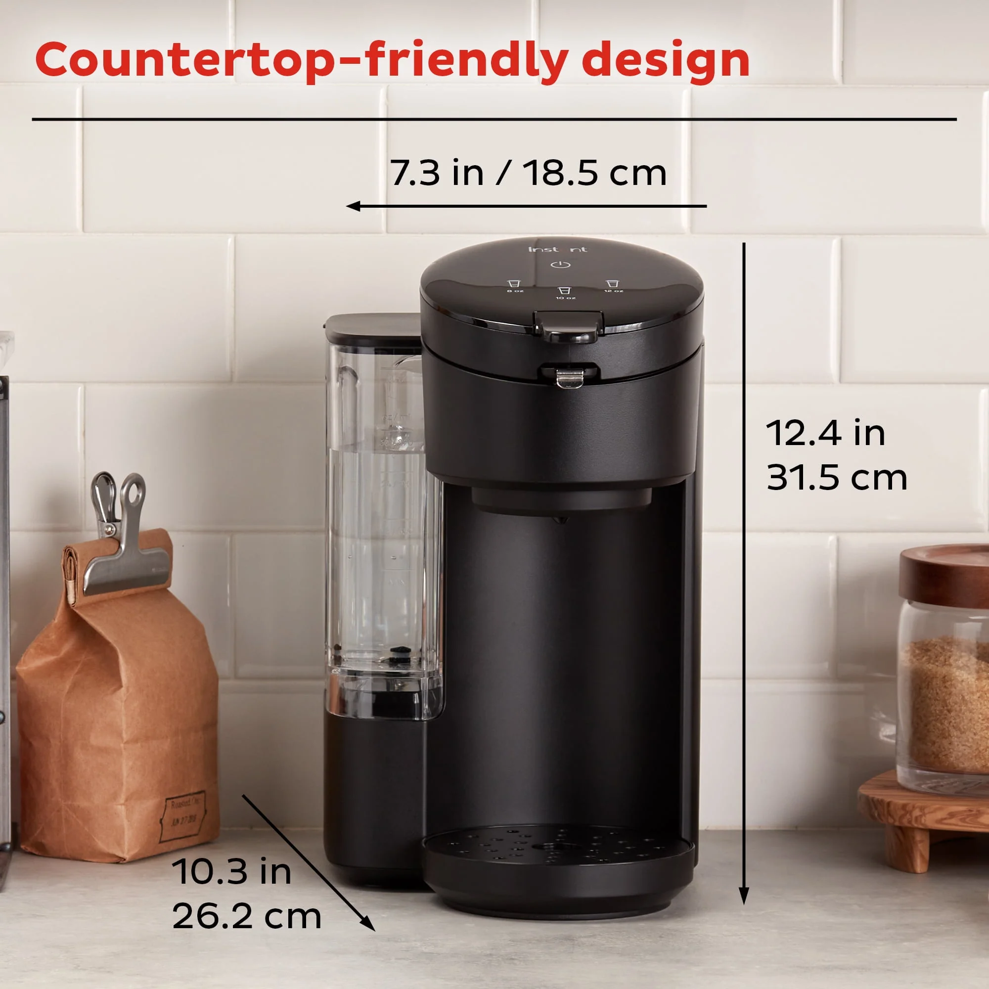 From the makers of Instant Pot comes the Instant Solo Café 2-in-1 Single Serve Coffee Maker For K-Cup Pods and Ground Coffee. Brewing a great cup of coffee at home is easy with new the Instant Solo Café Single-Serve Coffee Maker. It can handle both K-Cup pods and your own coffee grounds, depending on your mood. The included reusable pod with handle allows you to easily scoop coffee grounds and is top-rack dishwasher safe. When placed in the Instant Solo, the reusable pod activates a unique brewing sequence that extracts more flavor, aroma and body from your favorite ground coffee. Choose from multiple brew sizes with 8 oz, 10 oz or 12 oz cups. The 40 oz reservoir means you can refill your brewing water less frequently, and the removable drip tray lets you fill a 16 oz travel mug up to 7 inches tall. The sleek, black frame fits in with any decor style, and the size makes it perfect on any countertop without being in the way. The Instant Solo Café 2-in-1 Coffee Maker is space saving, time saving, and easy to use. Item #: 140-6021-01
