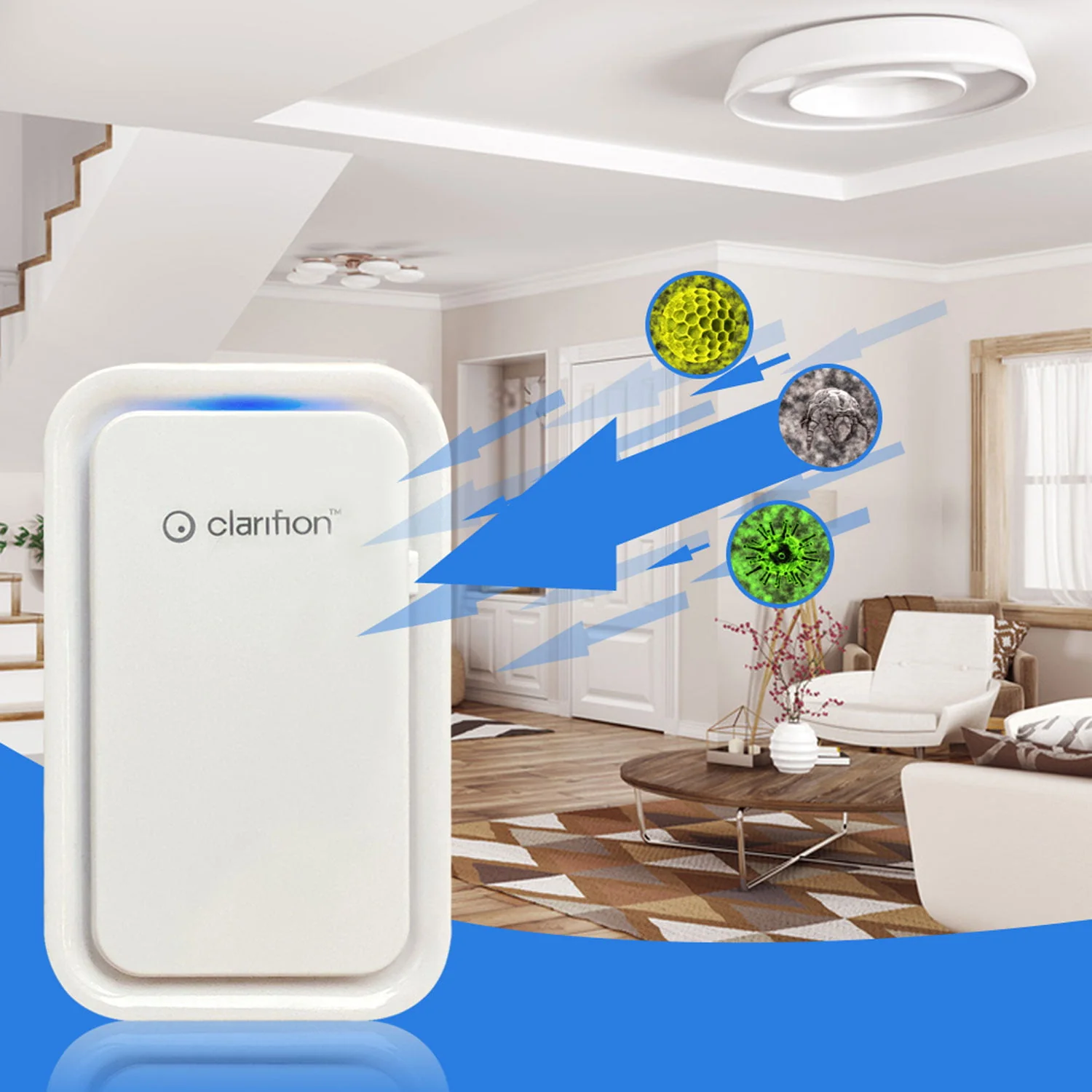 Clarifion - Negative Ion Generator with Highest Output (1 Pack) Filterless Mobile Ionizer & Travel Air Purifier, Plug in, Eliminates: Pollutants, Allergens, Germs, Smoke, Bacteria, Pet Dander
