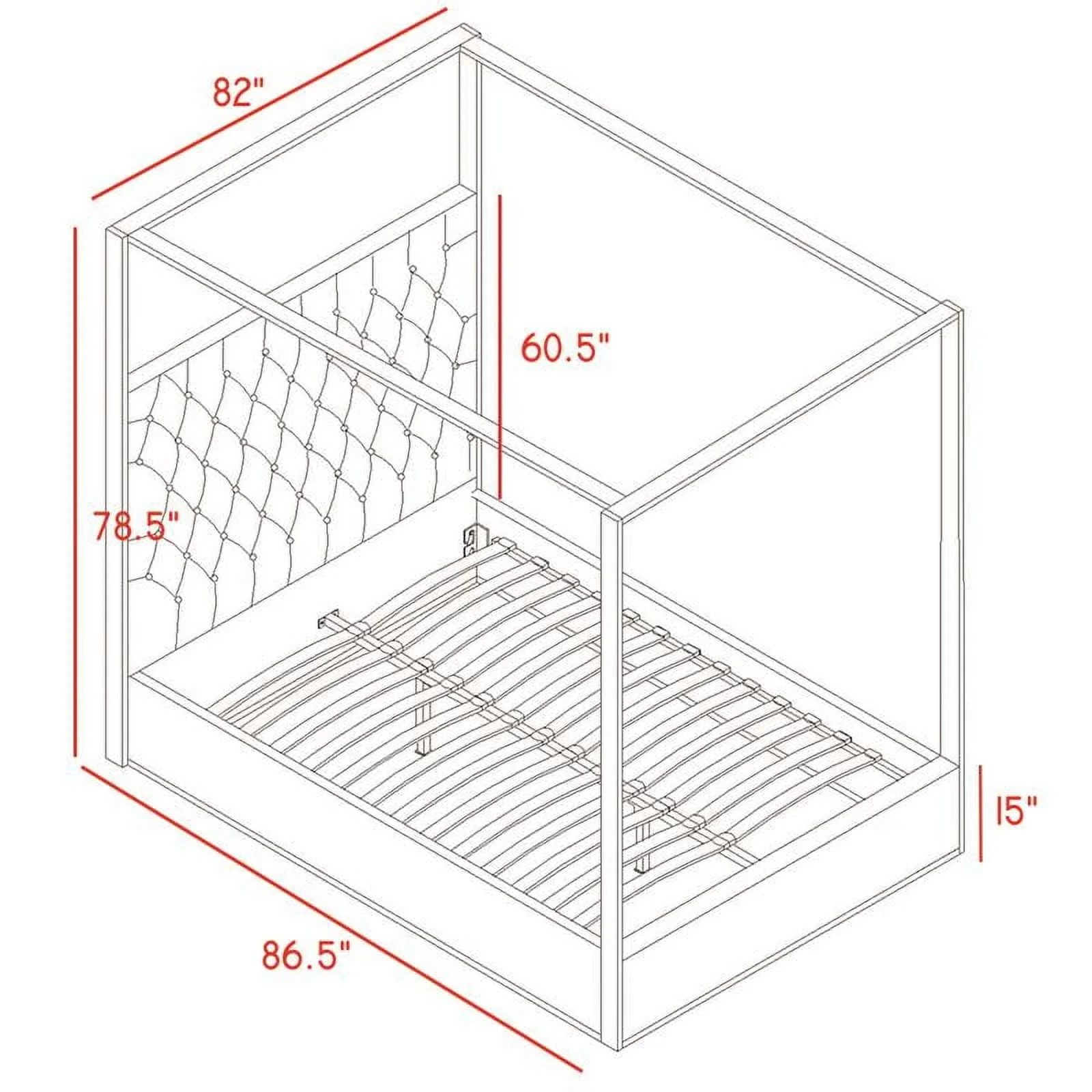 Dream big in the Porter white velvet canopy bed. This handsome Meridian Furniture bed has a tufted headboard that stands a full 60 inches tall, giving the bed a regal and sophisticated look. The headboard is tufted for added elegance, and the bed comes with a chrome canopy, adding to its overall elegance and grandeur. White velvet fabric used on the sides and headboard gives it a luxe vibe, and the headboard is heavily padded, making it an ideal backrest for reading or watching TV.