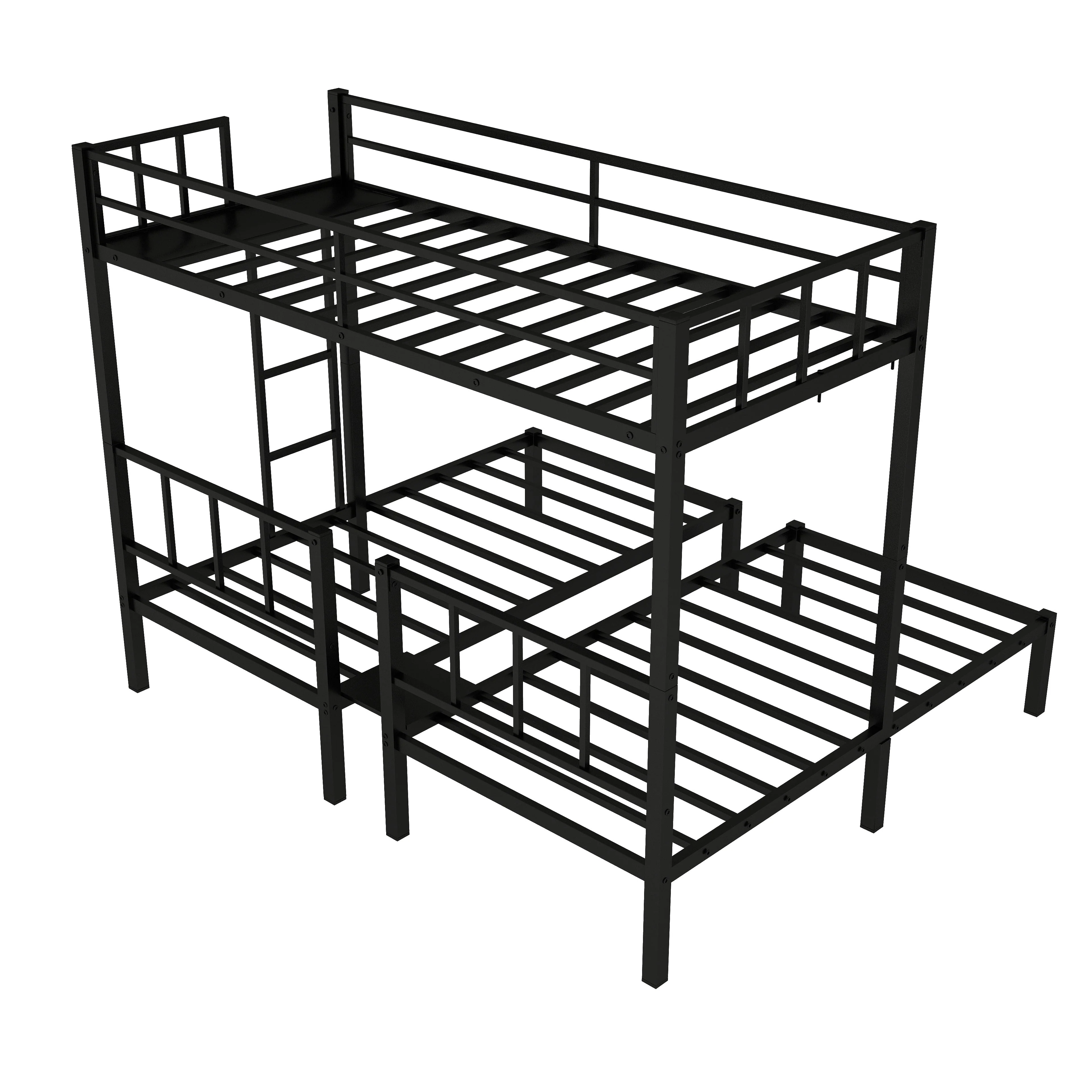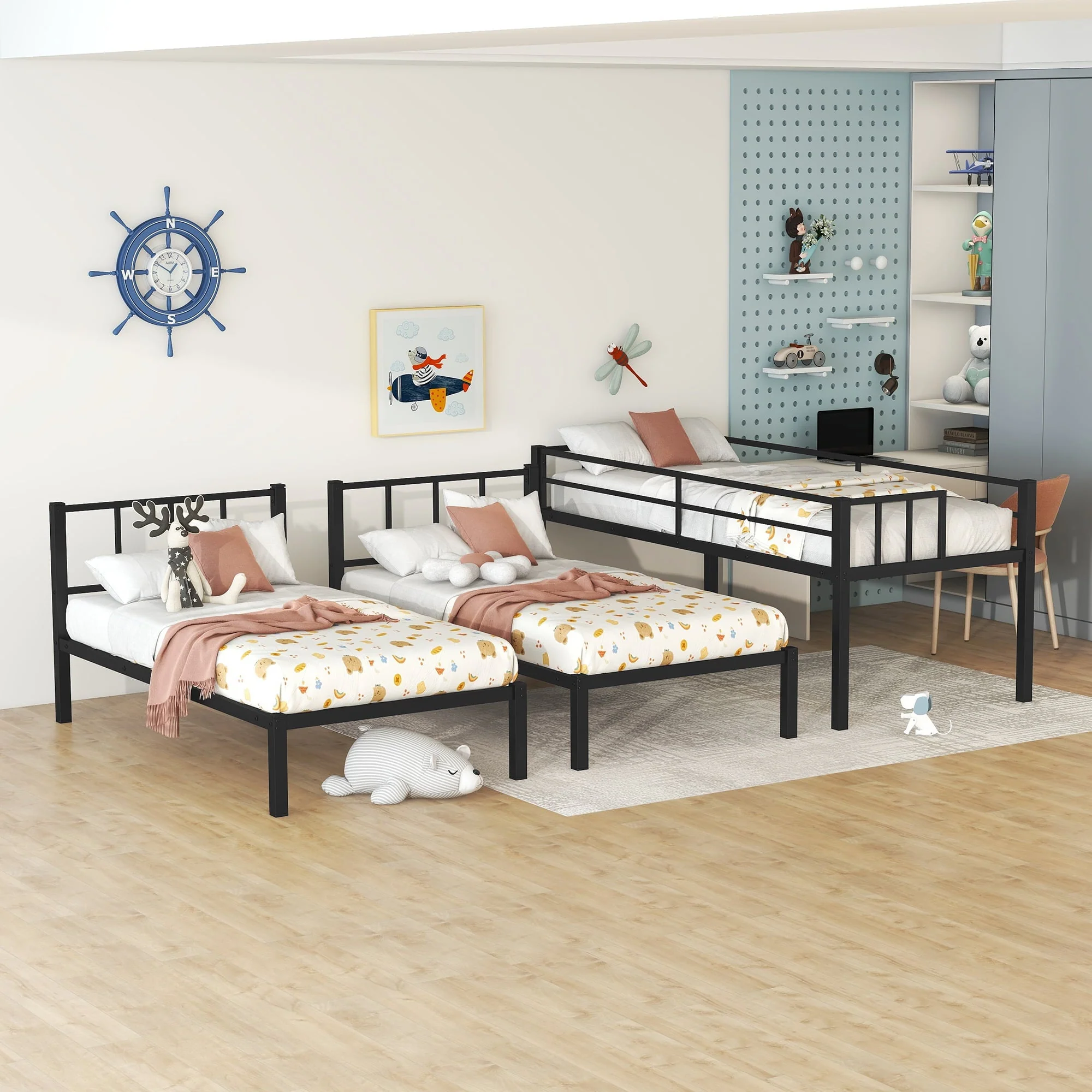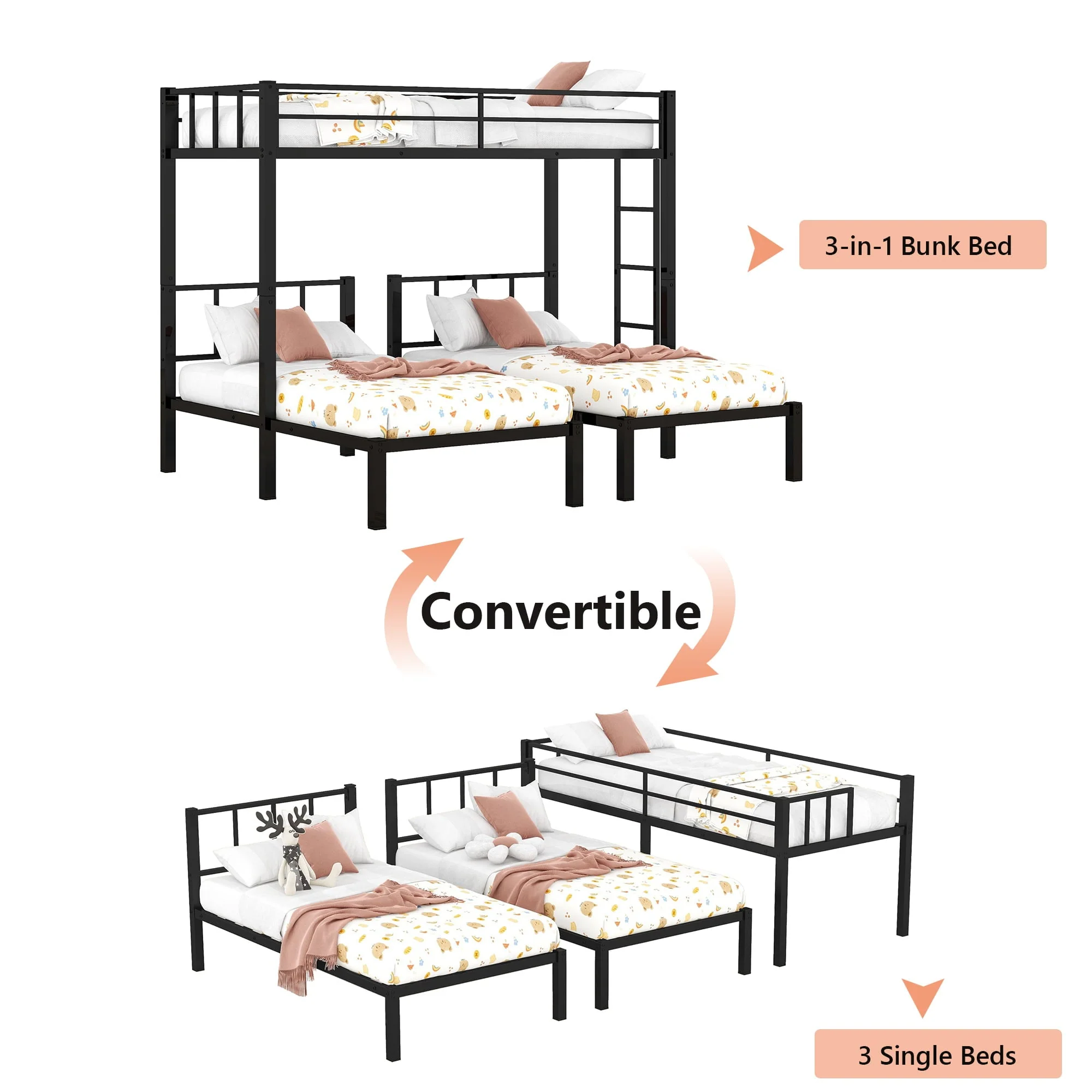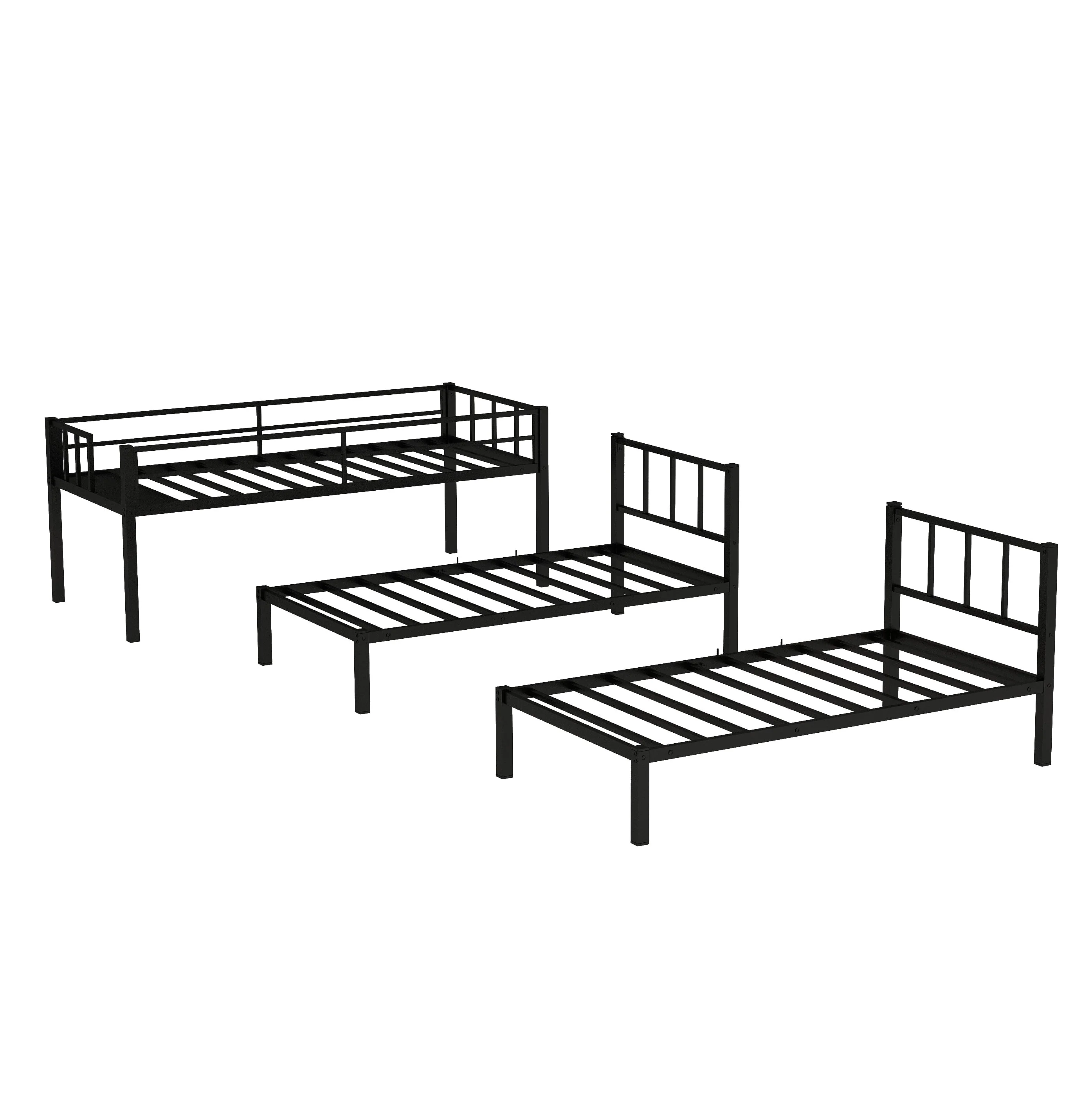 Introducing the perfect solution for a shared bedroom: the metal triple bunk bed! This heavy-duty bed frame is constructed with strong metal that is durable and sturdy to last for years. This 3 bunk bed reduces the noise issues of traditional metal beds, creating a peaceful night’s sleep. The three beds bunk bed features an easy assembly structure and can be separated into three twin beds. The black finish of this bed frame is sure to match any bedroom décor. Don't miss out on this incredible addition to your kids home!