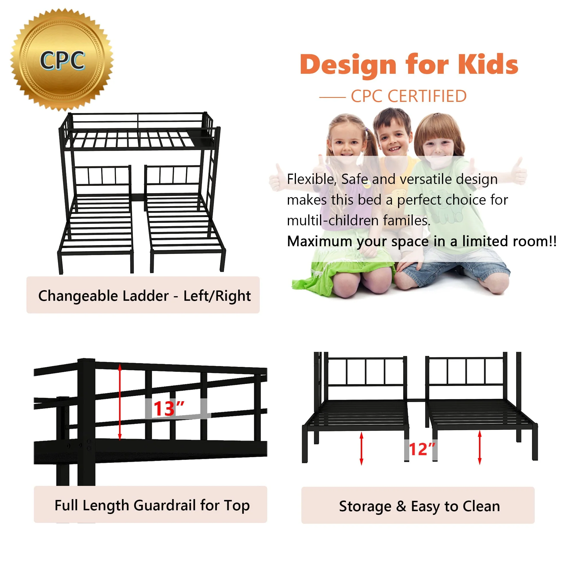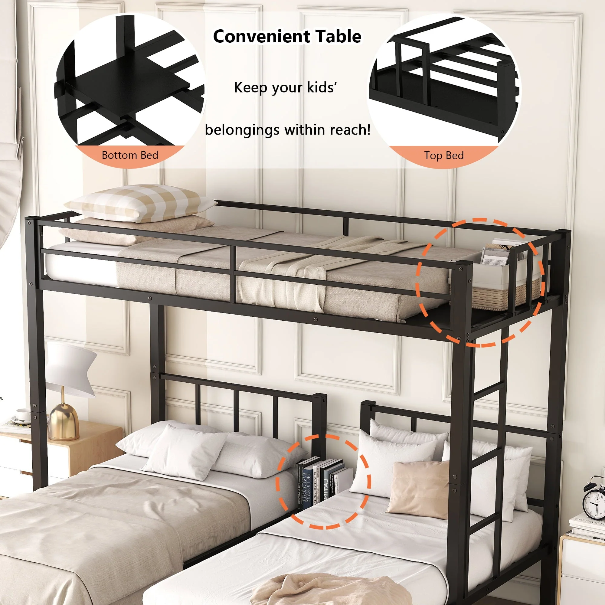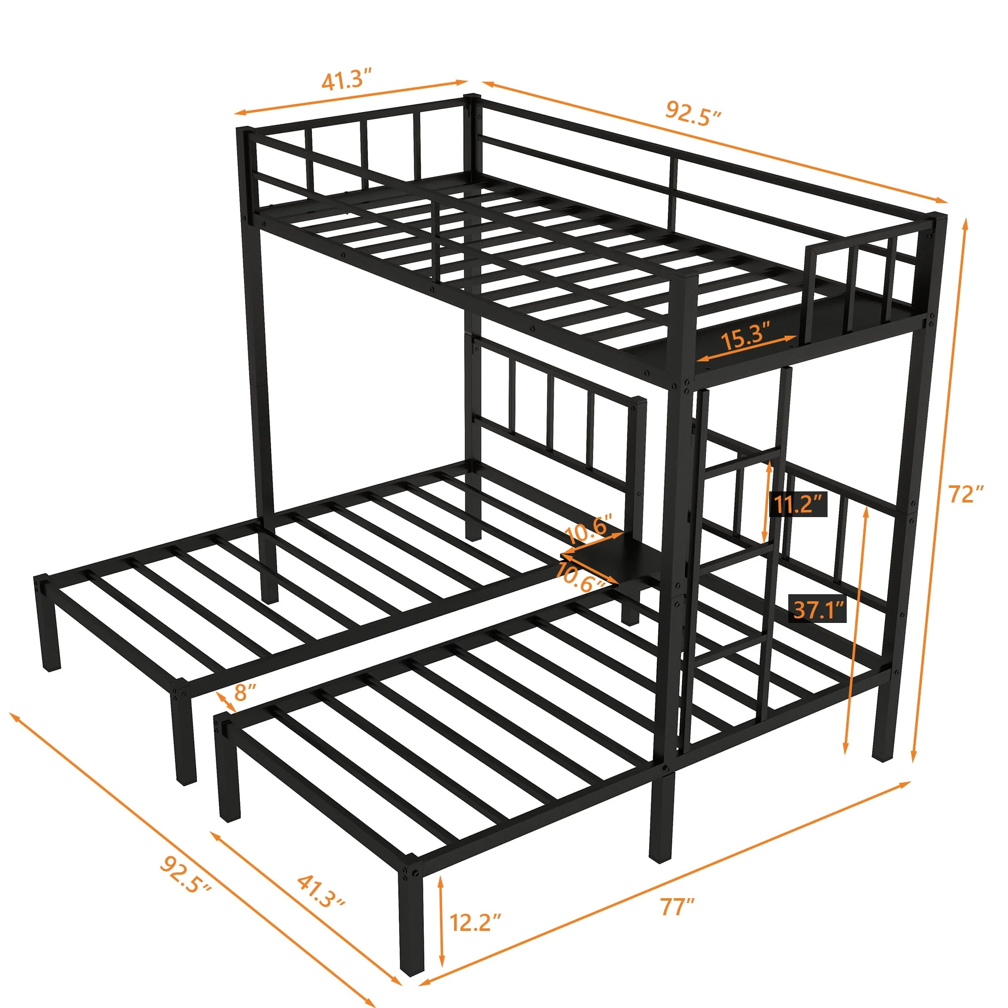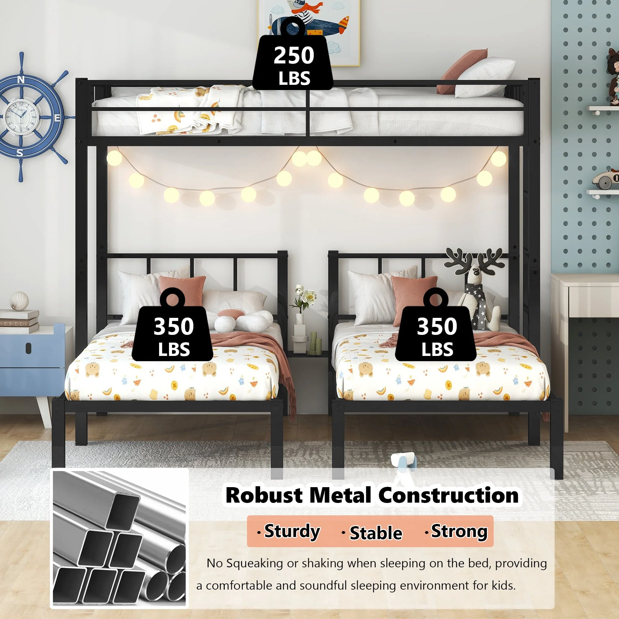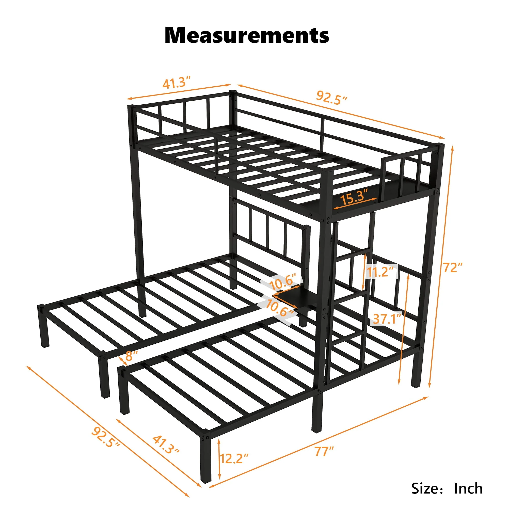 Introducing the perfect solution for a shared bedroom: the metal triple bunk bed! This heavy-duty bed frame is constructed with strong metal that is durable and sturdy to last for years. This 3 bunk bed reduces the noise issues of traditional metal beds, creating a peaceful night’s sleep. The three beds bunk bed features an easy assembly structure and can be separated into three twin beds. The black finish of this bed frame is sure to match any bedroom décor. Don't miss out on this incredible addition to your kids home!