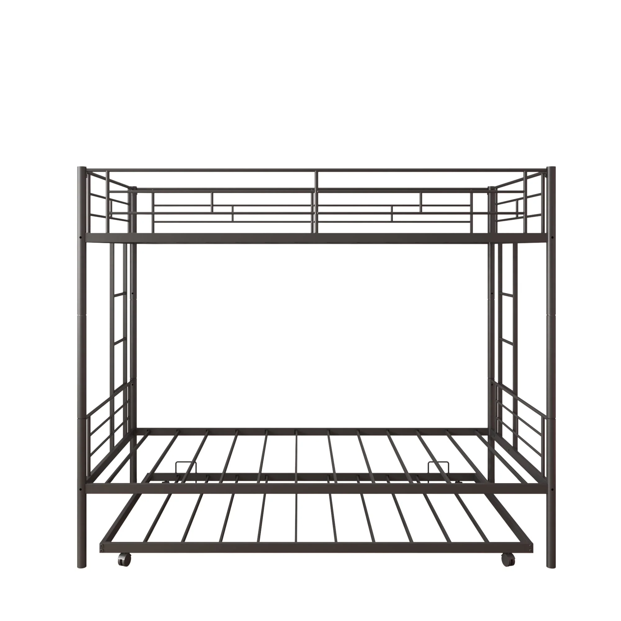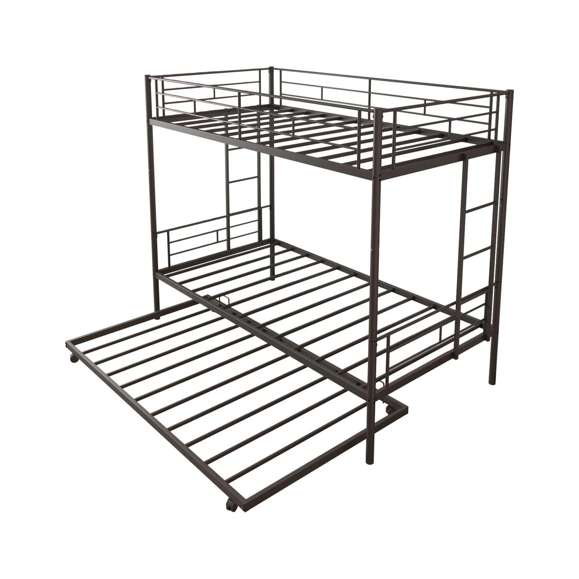 Twin Over Twin Bunk Bed with Trundle, Metal Bunk Beds for Kids Adults Teens, Bed Frame Can Be Divided Into 2 Twin Beds with 2 Side Ladders, Metal Support Slat, Safety Guard Rail, Black