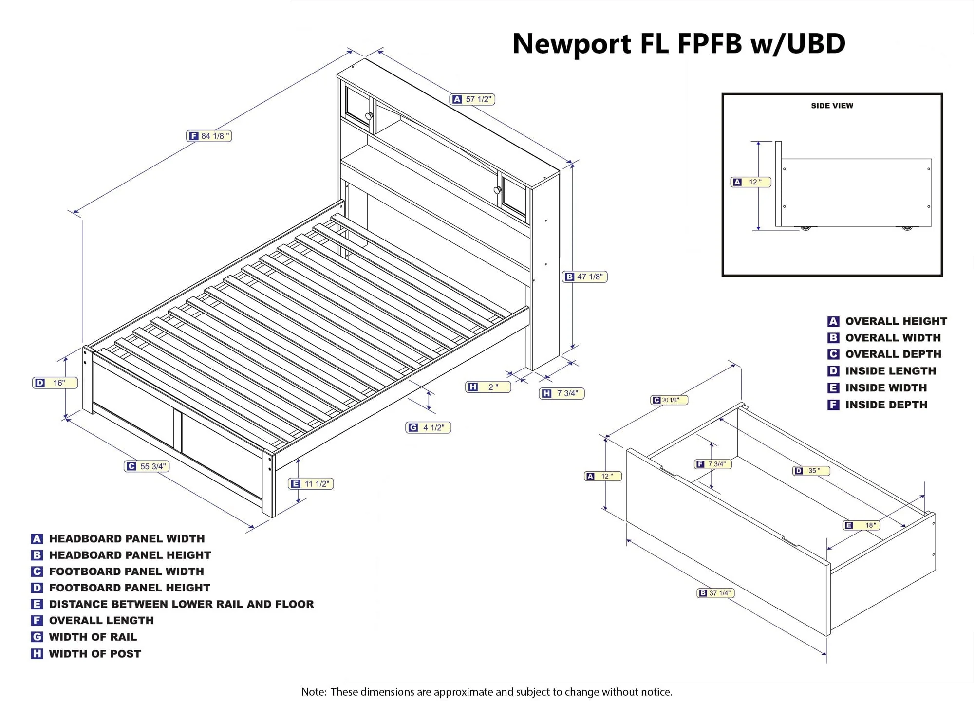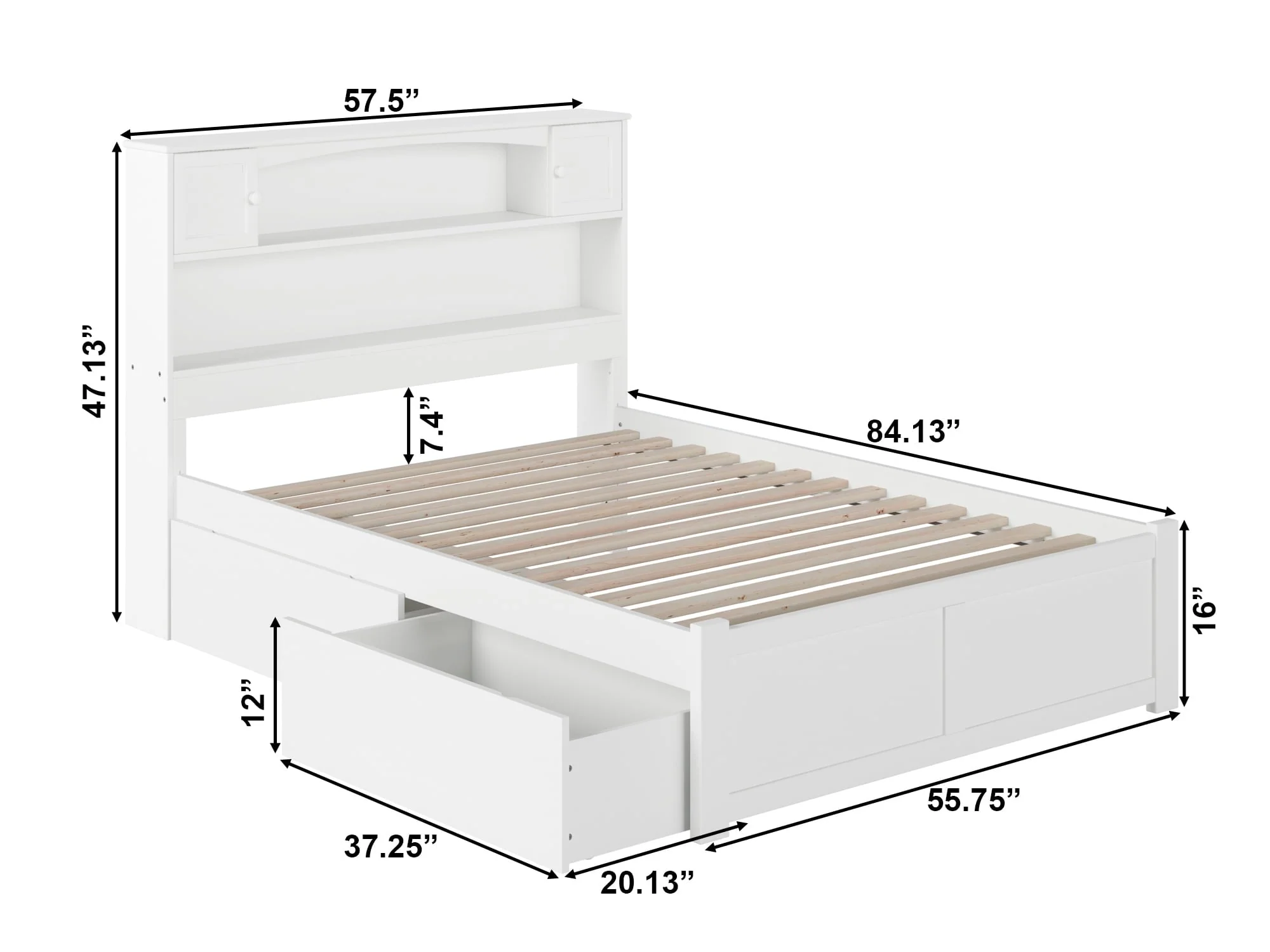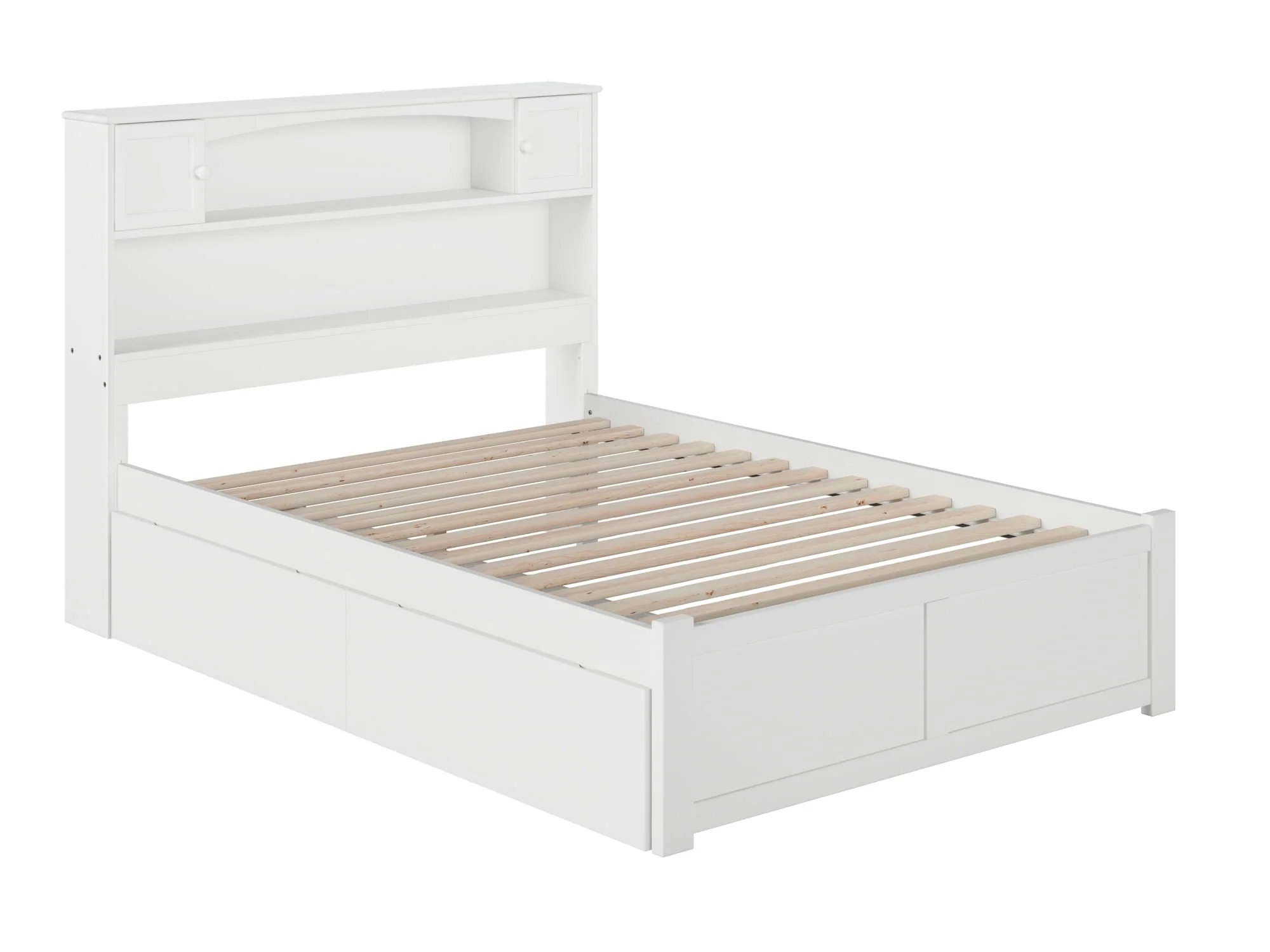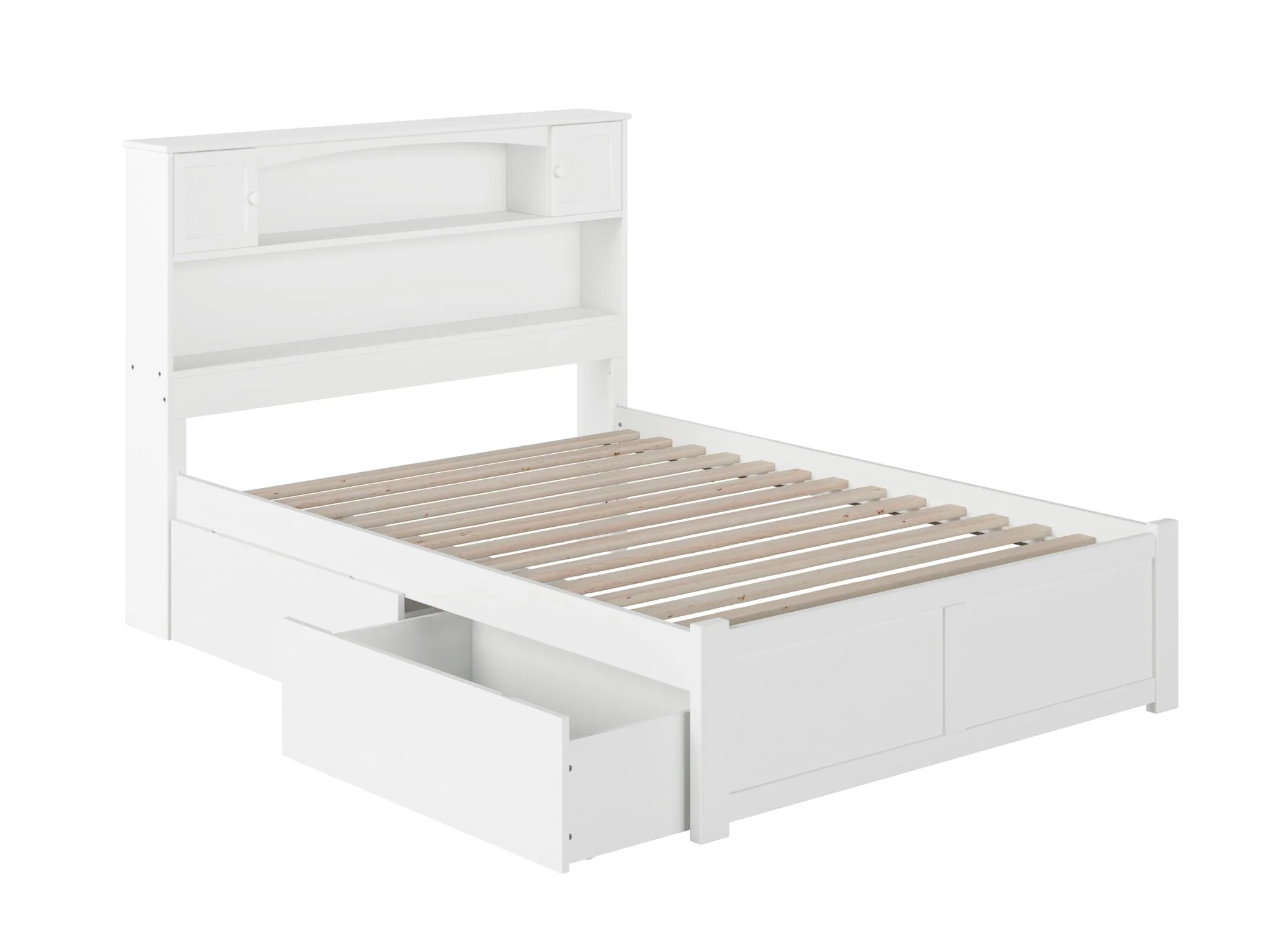 The simplicity of the Newport Platform Bed is elevated by the stylish, yet functional, bookcase headboard. The generously sized nooks and cabinets provide ample amounts of storage for books, toys or other nighttime necessities without sacrificing floorspace. Tucked under the bed is one set of two storage drawers that can be placed on either side of the bed. Additional sets can be purchased separately to add extra storage space. Attach the included surface mount turbo charger and keep all your electronics charged and ready to go!