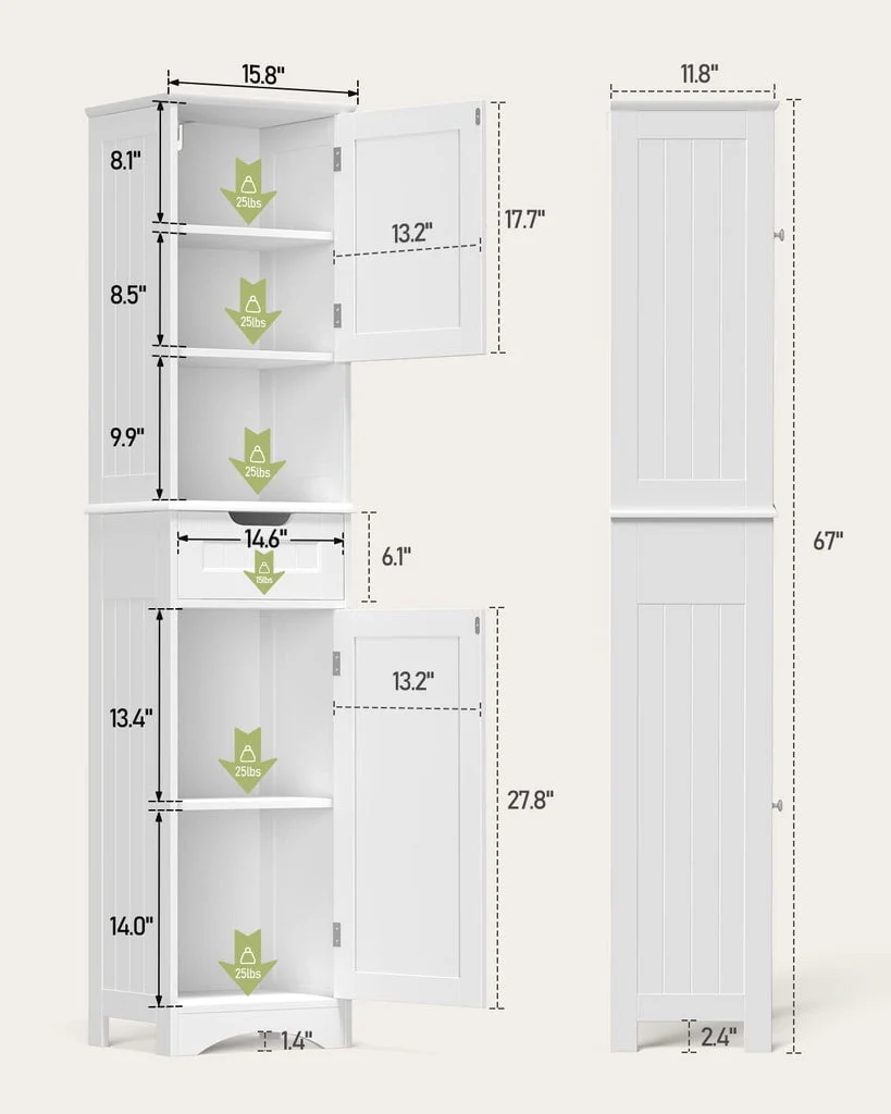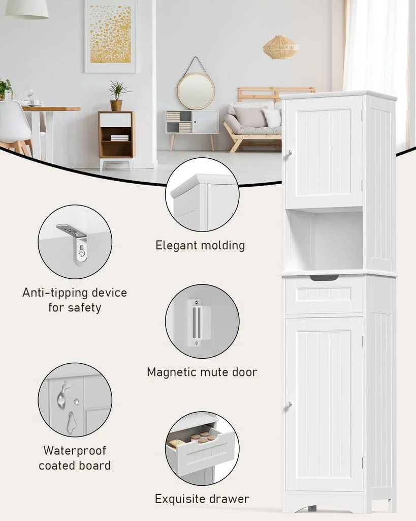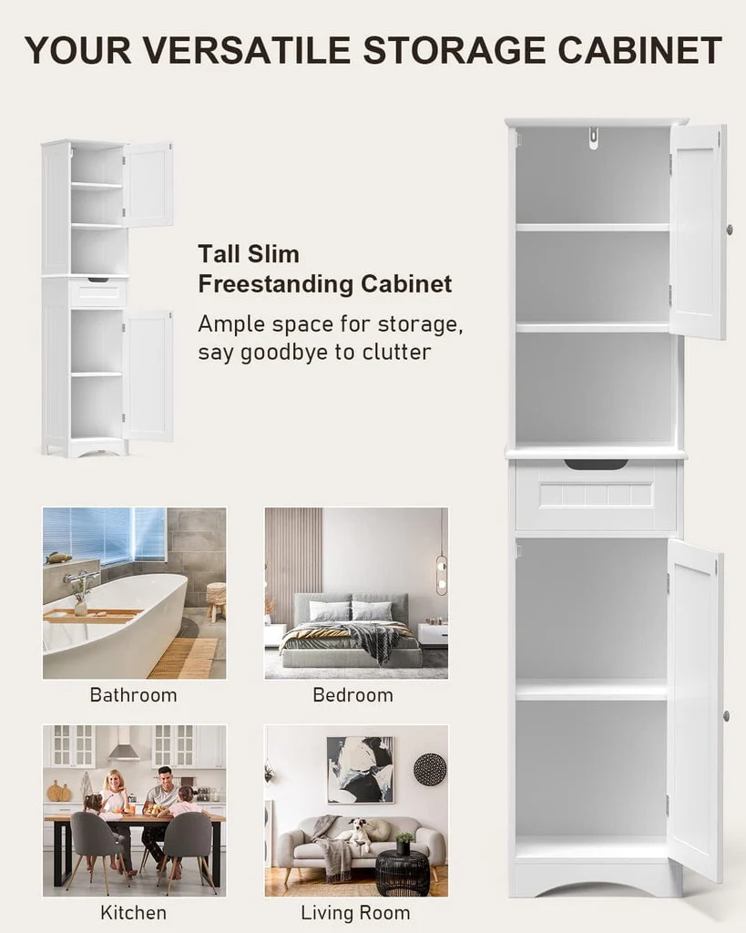 Aiho 67"h Bathroom Storage Cabinet with 2 Doors and 1 Drawer for Bathroom, Bedroom, Kitchen, and Living Room - White