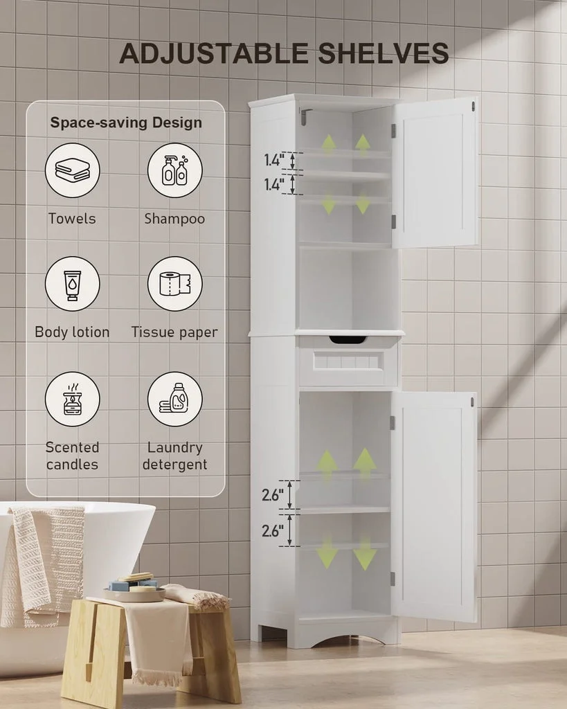 • Aiho 67"h Bathroom Storage Cabinet with 2 Doors and 1 Drawer for Bathroom, Bedroom, Kitchen, and Living Room - White