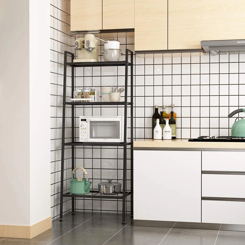 4-Tier open shelves: rustic ladder shelf provides ample space while making full use of the limited space, Perfect for storing any items you want to collect and display