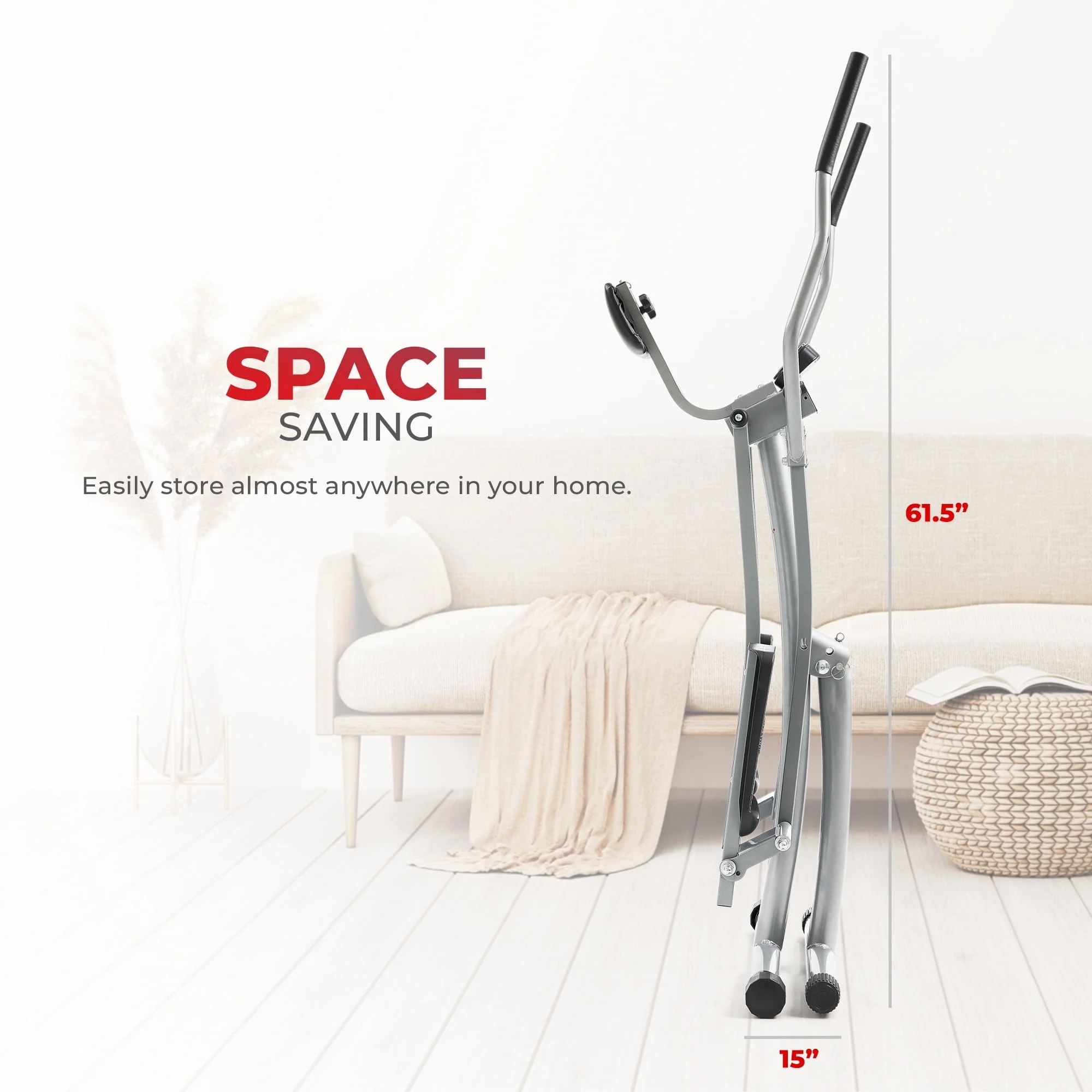 Sunny Health & Fitness SF-E902 Air Walk Trainer provides an aerobic workout, giving you all the benefits of stretching, walking, running, cross-country, skiing, and aerobic dancing without jarring impacts or damaging movements to your body. This space-saving Air Walker trainer folds to half the size, making it easy to put away in your closet or in a tight space. The striding motion delivers a slight twist to the midsection engaging both the upper and lower body. You’ll get a total body workout every time you workout!