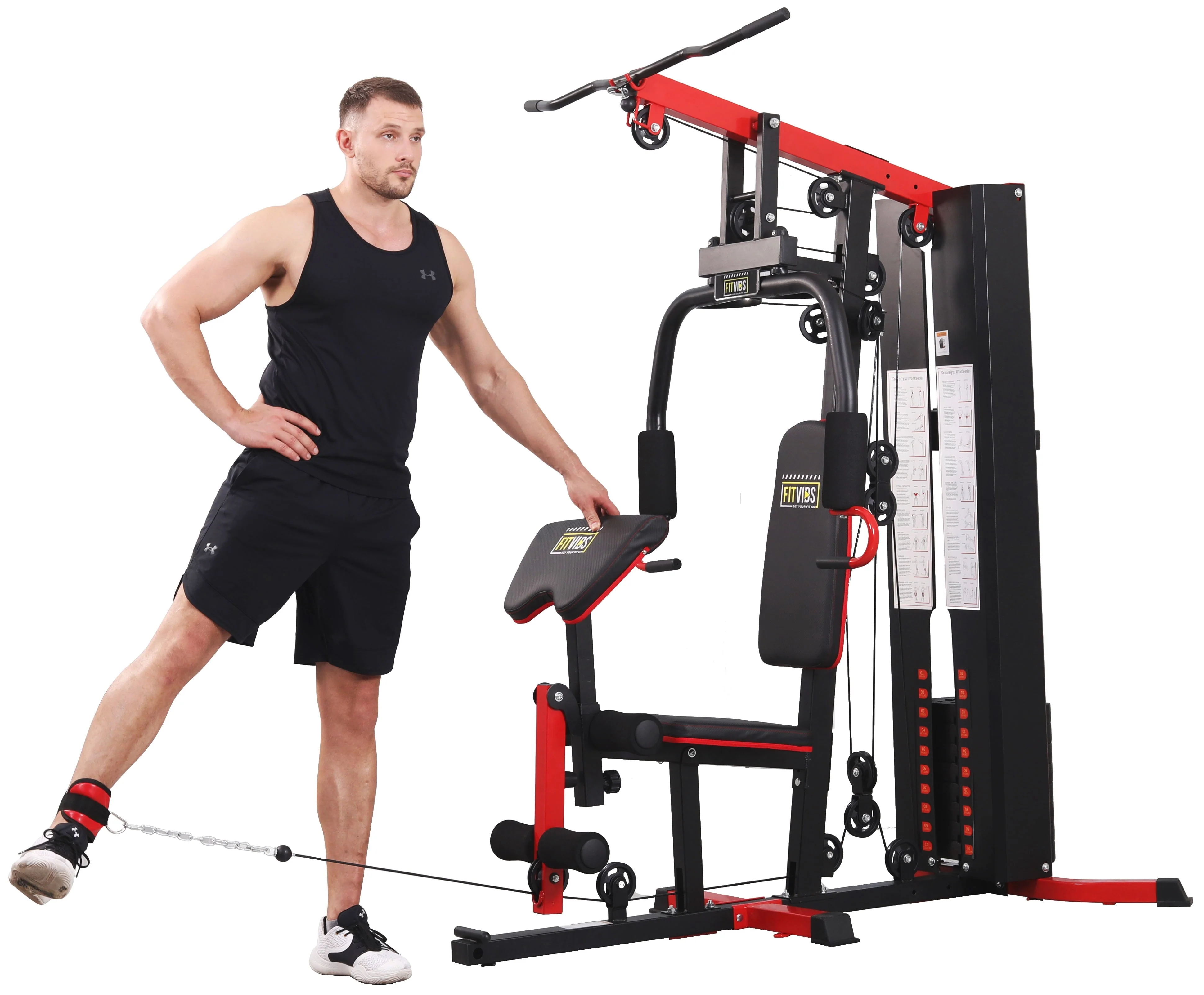Fitvids Home Gym System Workout Station with 330 Lbs of Resistance, 122.5 Lbs Weight Stack, Two Station, Comes with Installation Instruction Video