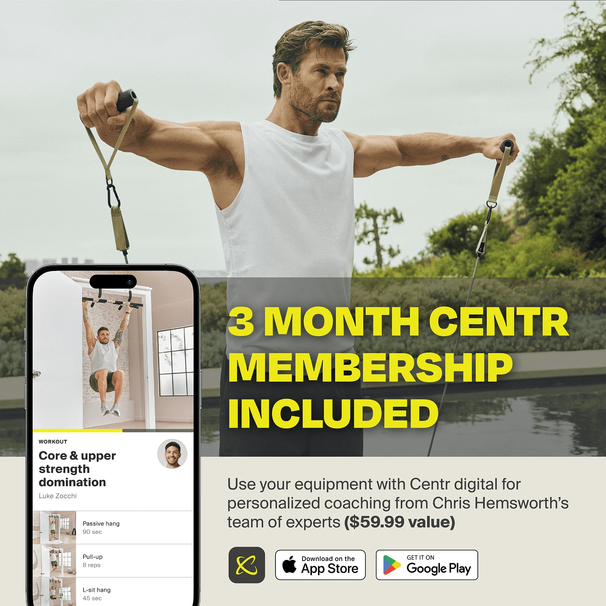 Use your equipment with Centr to get personalized coaching from Chris Hemsworth’s team of experts. Your equipment purchase includes a complimentary 3-month digital membership ($59.99 in subscription savings) to fuel your movement, meals, and mind. Centr’s digital platform can be used on any device and syncs with your favorite wearable to track your progress. Centr coaching comes with limitless ways to improve your total well-being with fitness training, nutrition advice, and mindfulness tools from Centr’s top experts.