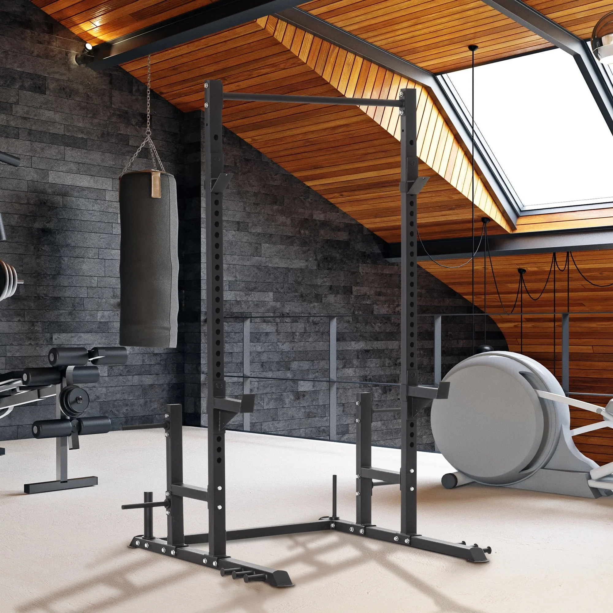 This power tower dip station by Soozier brings the gym to your home. Train your abs, arms, back, chest, shoulders, and leg muscles for a full-body strength training workout. The adjustable ab workout equipment is made with a steel frame for a solid structure that helps you improve your stability and bear more weight for effective strength training.