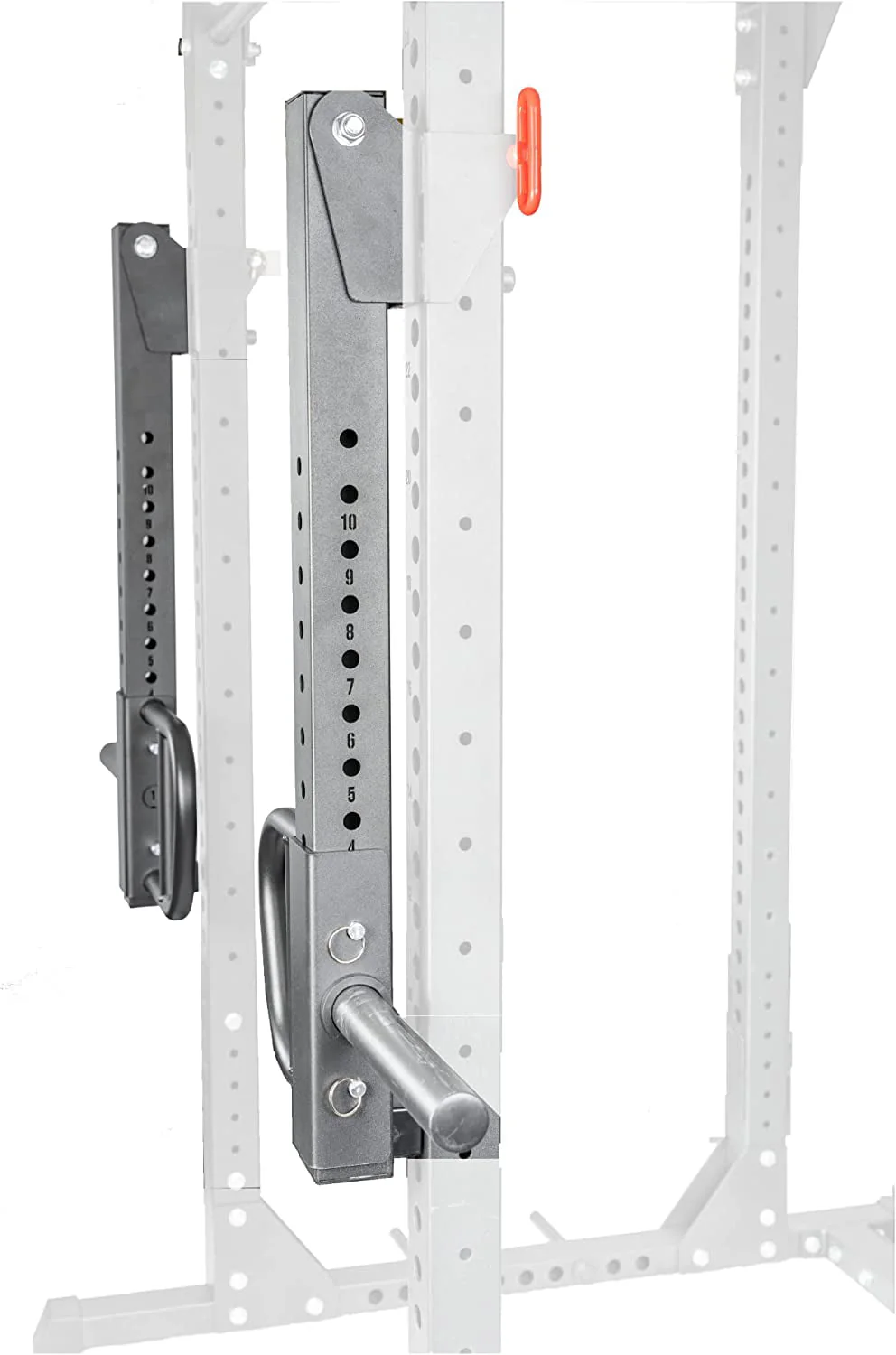 Expand your home or garage gym with this height adjustable jammer arm attachment. Our jammer arms will only fit on our Elite Series Power Cage because the mechanism will only fit on 3” x 3” upright poles exclusively. This beast was created in order to add more dynamic, explosive upper and lower body exercises that help increase total body strength. These beauties are forged with high grade 11 gauge steel, painted with low gloss black paint, and finished with a powder coat to help reduce the risk of rust. Rubber stoppers prevent paint damage to the upright poles and helps reduce grinding type sounds that occur when metal rubs on metal. Steel cut numbering system makes adjusting the height easy. Decide a comfortable spot you can lift from, make sure they are at the same height level on each side, then, use the pins to help lock into place. Weight loading arms are long and are 2” in diameter, this allows 2” Olympic plates to be loaded on with relative ease. The maximum weight capacity is 440 pounds for each arm.