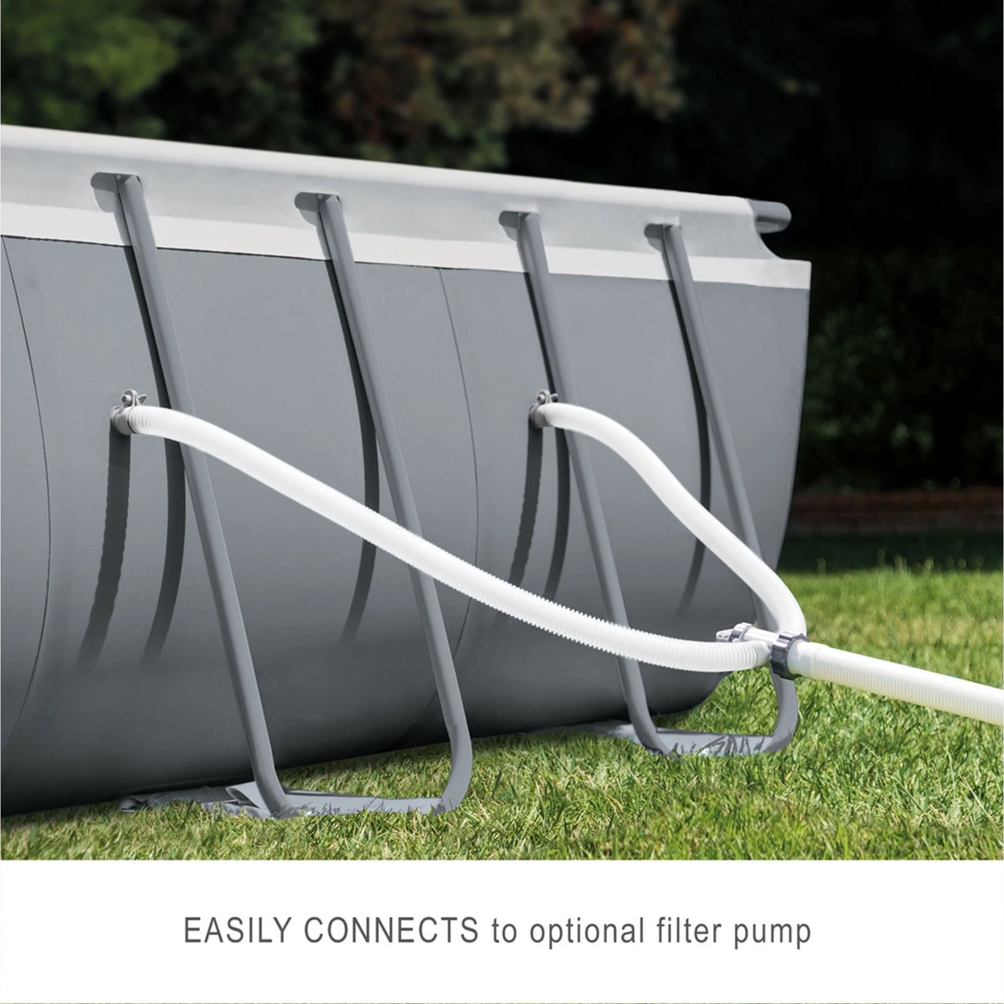 Make the most out of your summers and a splash this summer with the Intex 32-foot x 16-foot x 52-inch Ultra XTR Rectangular Frame Pool Set.The rectangular swimming pool design is perfect for narrow backyards, lap swimmers, and pool games. The Ultra Frame design provides excellent durability and a sleek gray finish, all while making setup quick and easy. This pool includes everything you need for a great pool experience, including a ladder, debris cover, ground cloth, and the powerful Krystal Clear 110-120V, 2,800-gallon per hour sand filter pump.The Krystal Clear Sand Filter Pump saves you time, money, and frustration, and replaces the need to buy expensive filters by only needing routine backwashing and replacement sand every 5 years.Swim your summer days away and have a blast in the water with this Intex Ultra Frame Rectangular Pool Set.Note: Requires flat, level ground for proper installation.Disclaimer: Please review your HOA rules and restrictions before purchasing this product. Not all housing agencies permit private above-ground pools.