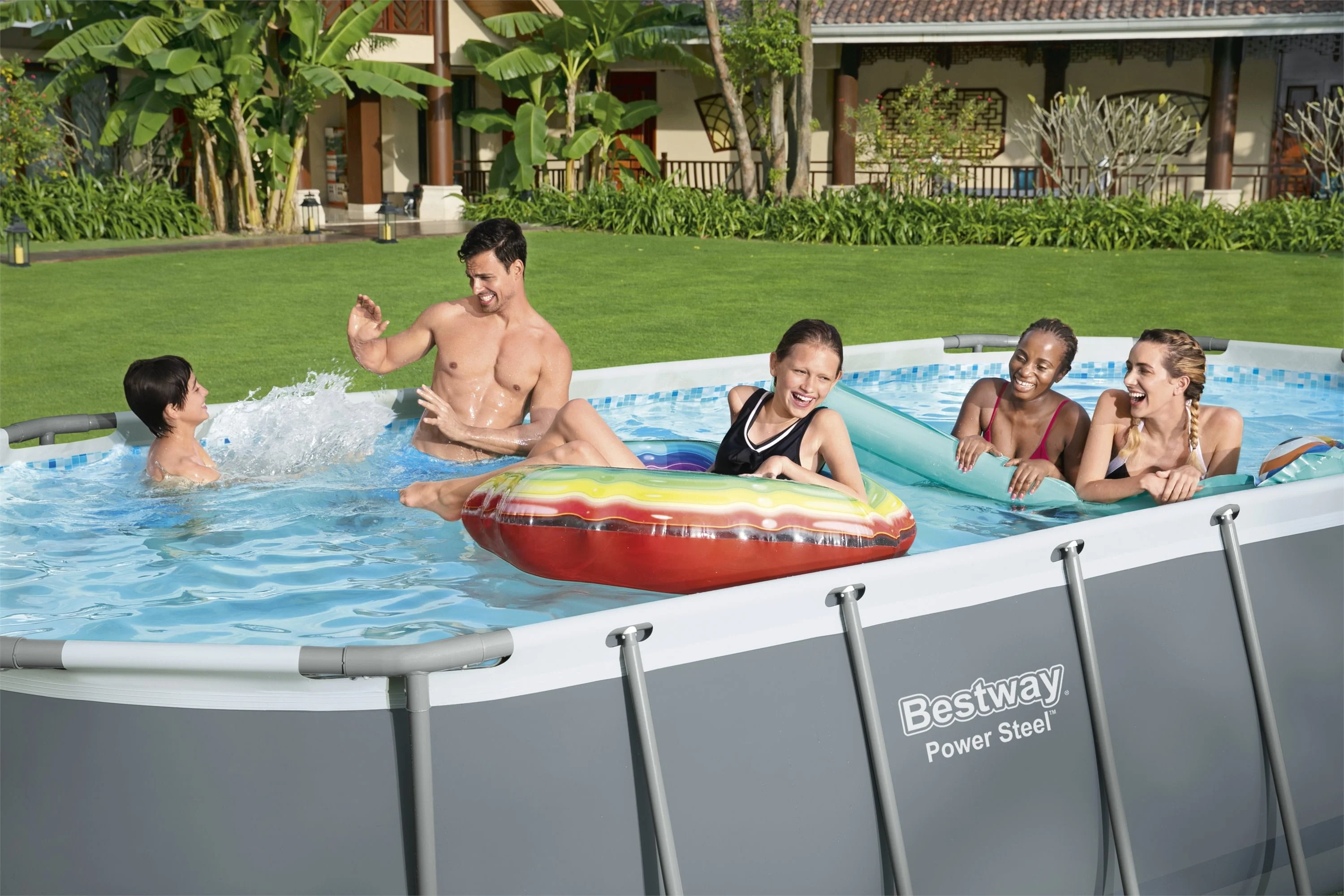 Have the summer of your and your kids dreams with an above ground pool right in your own backyard! The Bestway Power Steel Above Ground Pool is easy to set up and built to last. Durable Construction: The corrosion-resistant steel frame is equipped with our Seal & Lock System for a sturdy and secure frame connection. The protective connectors prevent damage from rust-causing metal on metal contact. The sturdy Tritech™ liner is made out of an ultra-durable 3-layer material that is reinforced for strength and puncture-resistance. Tritech is 15% more tear resistant, 33% more stretch resistant and 83% more puncture resistant than standard PVC, ensuring your pool will last summer after summer.