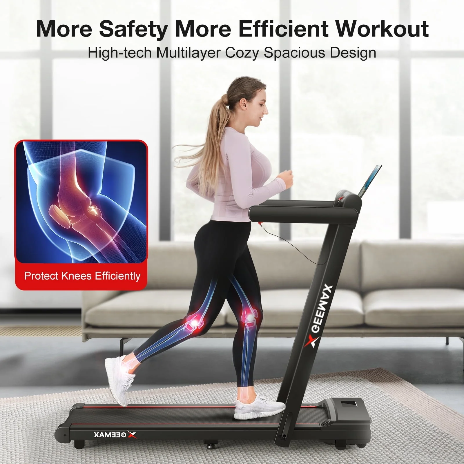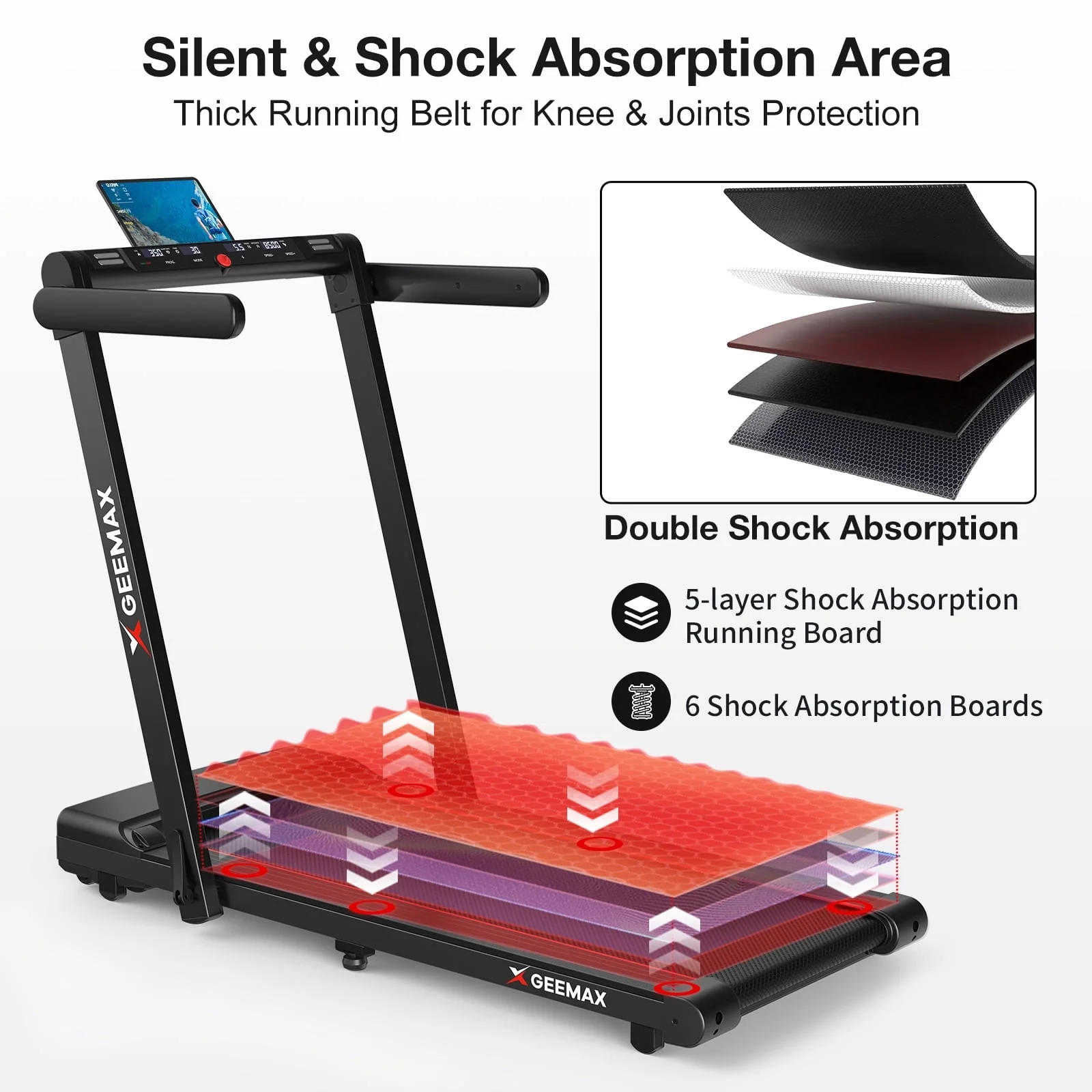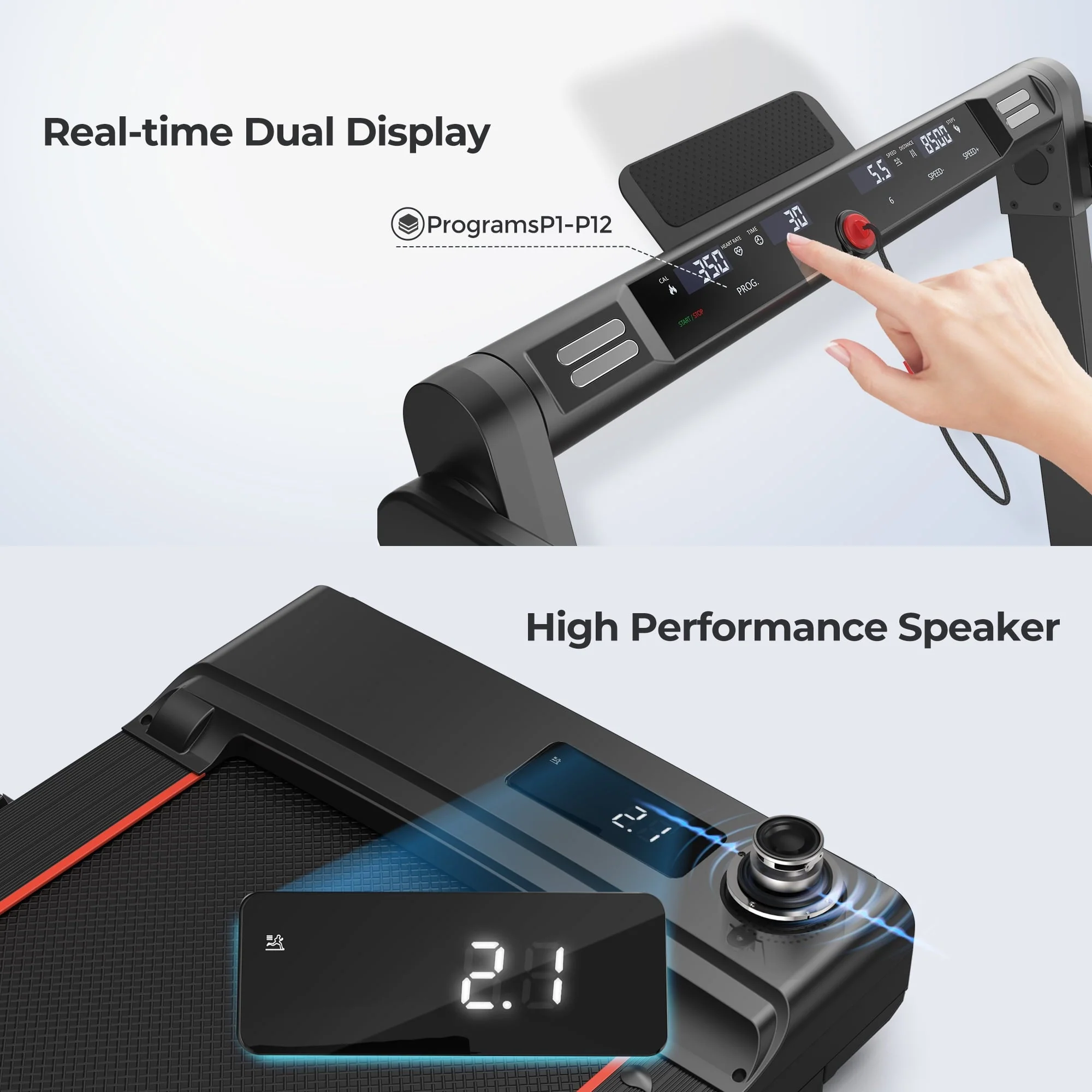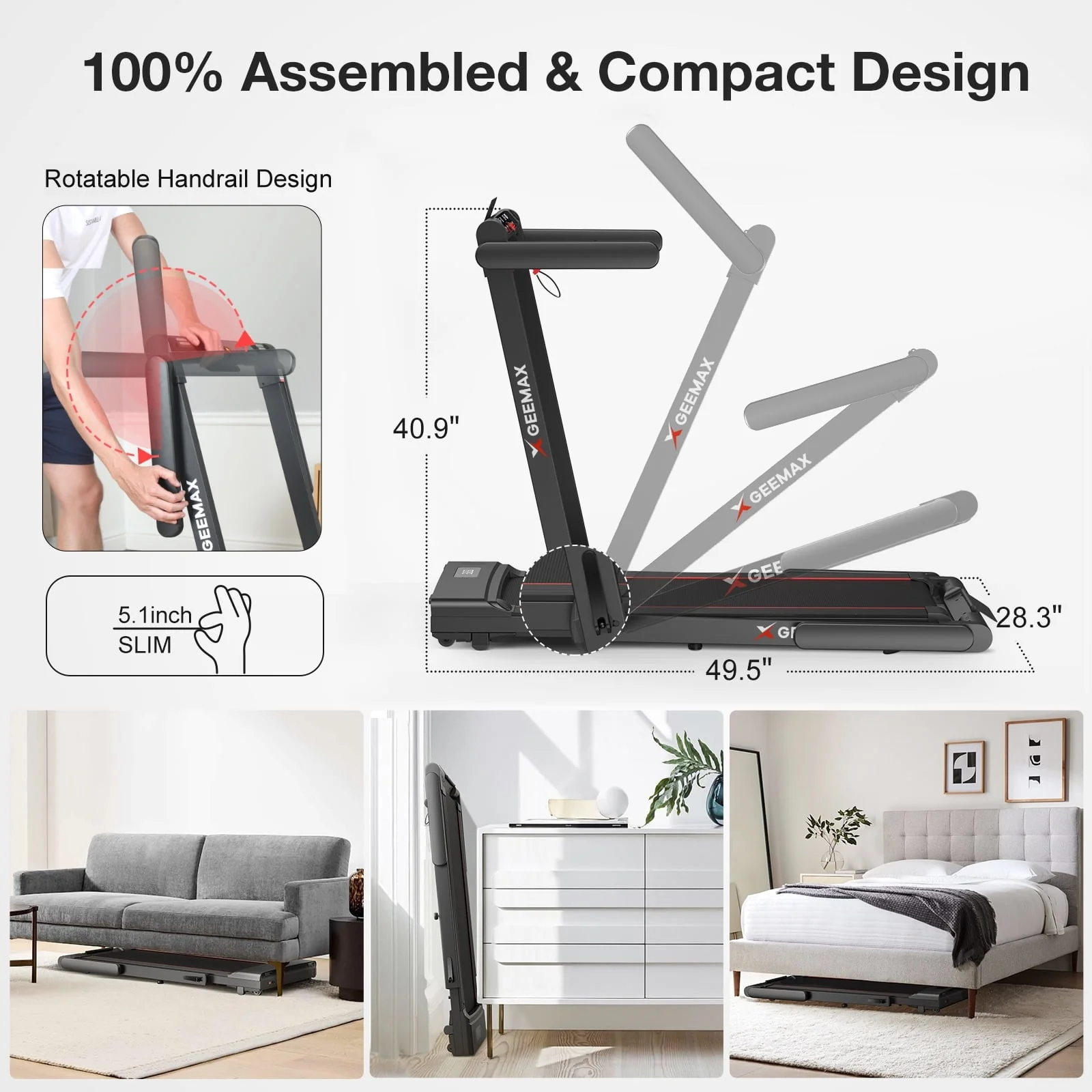 GEEMAX 3.0HP 2 in 1 Dual Display Folding Treadmill Under Desk Treadmill W/APP and 12 Pre - Set Fitness Exercise Programs & Remote Control Electric Treadmill Jogging Machine, 265 lb Capacity 0.6 - 7.5MPH