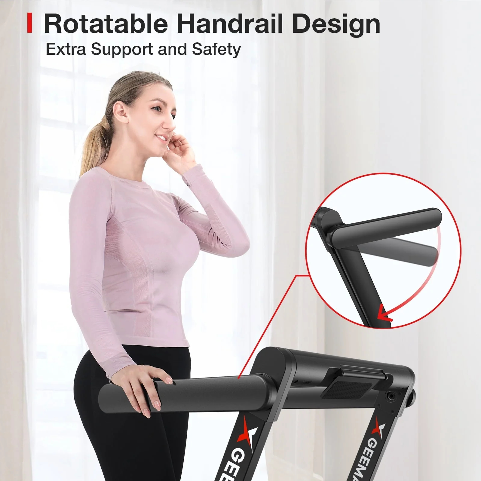 ④Enhanced safety assurance:Equipped with 270° No dismantling rotating armrest, the treadmill provides effective protection during fast running, ensuring a safer workout experience compared to armrest-free designs.