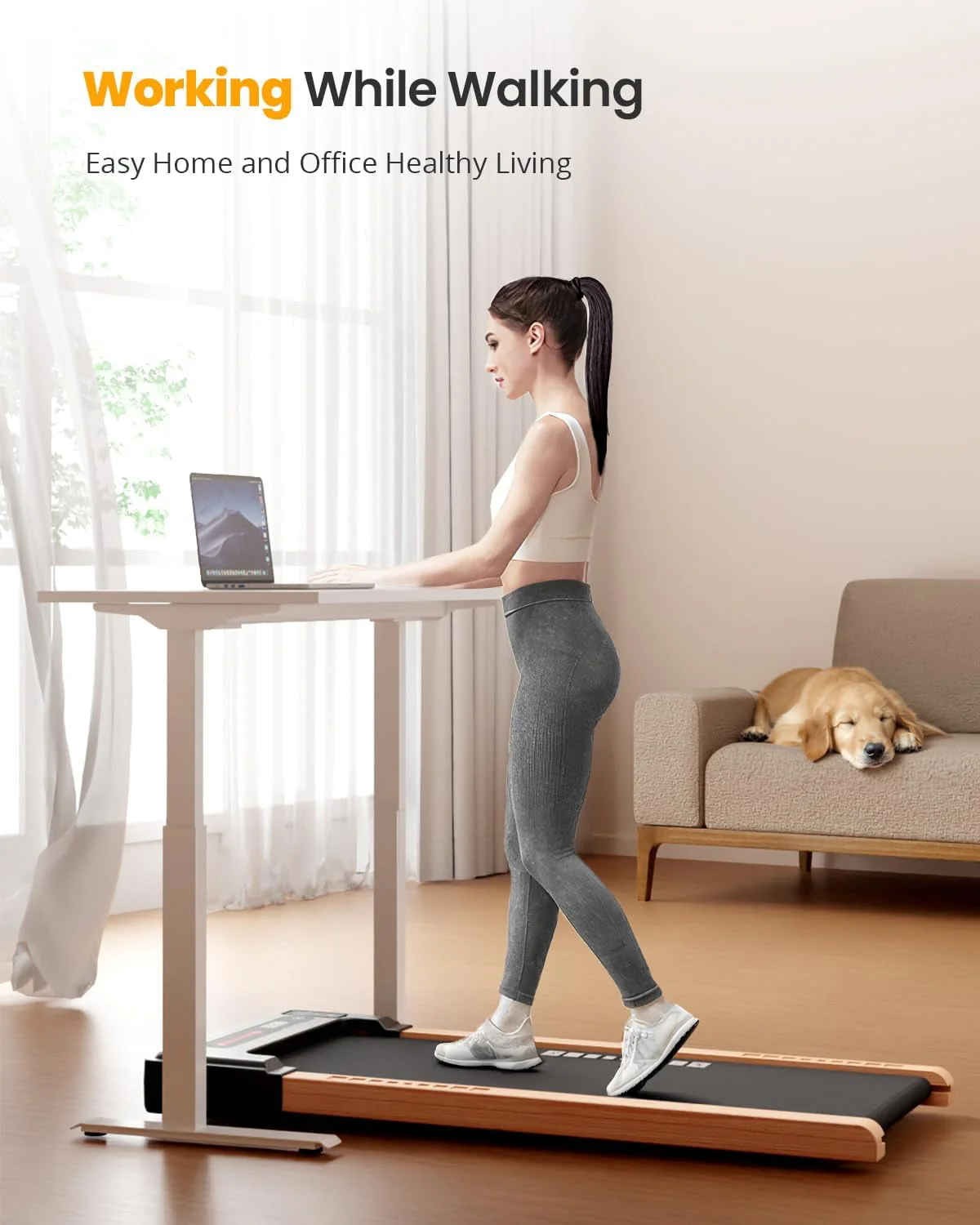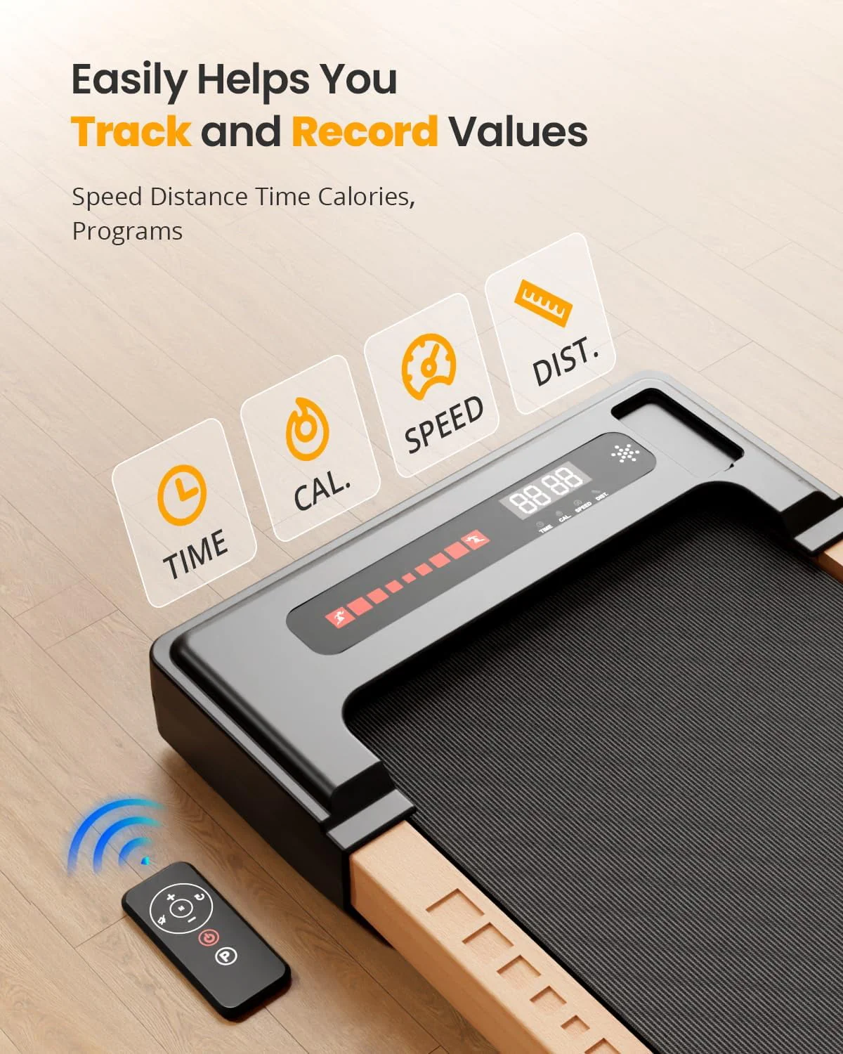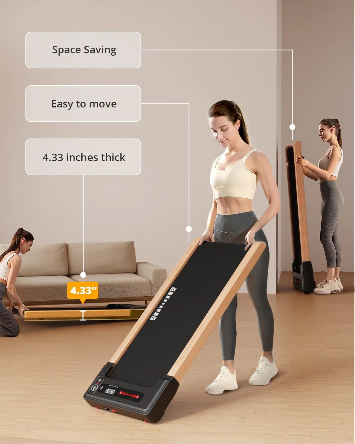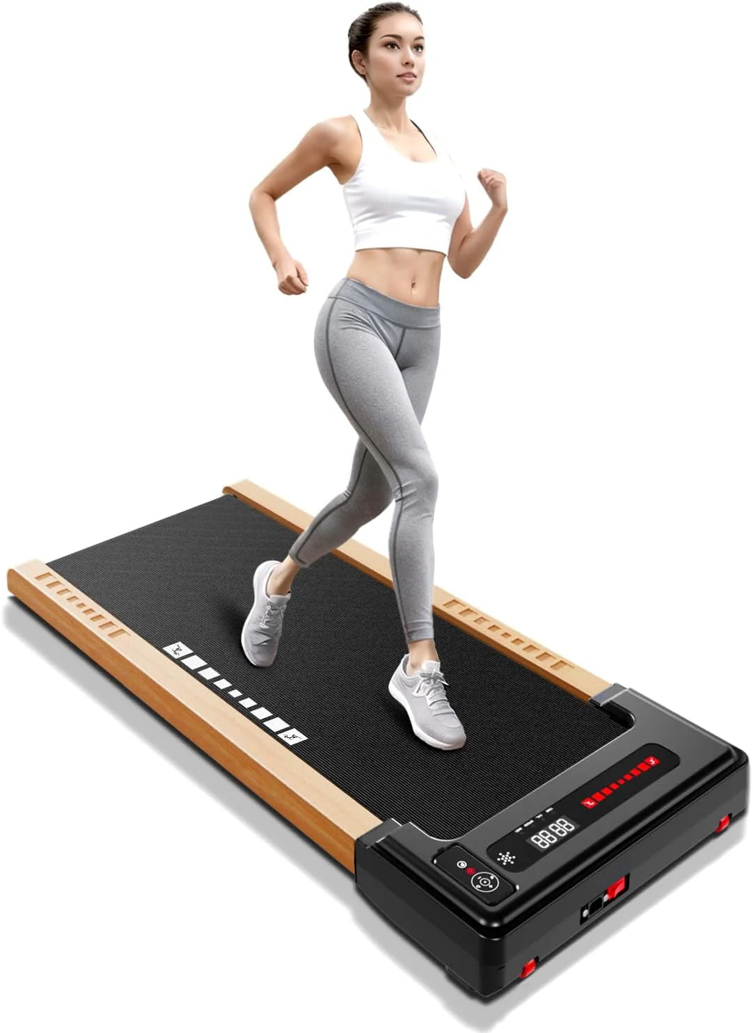 This Sunnyroad wood walking pad treadmill is perfect for office and home use to help have a healthy body. Built-in powerful 2.25HP motor helps you to walk steadily or run fast to shape your body. 5 layers non-slip running belt will greatly absorb shock to provide cushioning for knee, muscle and joints. The front wheels together with the foldable design will help you move or store it in a small place.Innovative wood frame to better match your furniture style. Start exercising now and have a healthy body easily!