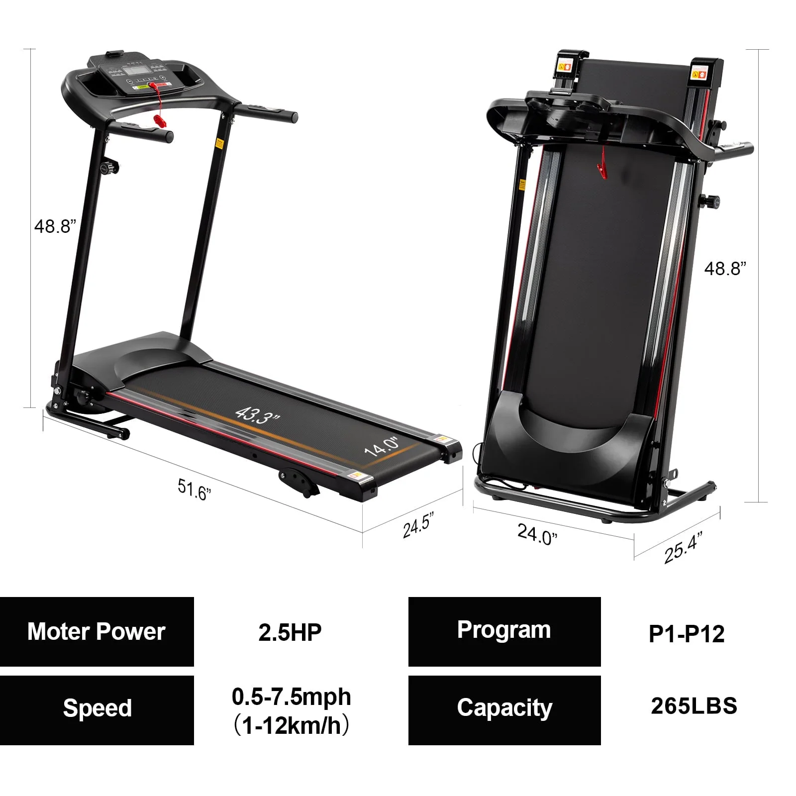 After exercise, the portable treadmill can be easily folded up and the folding area is 25"(L) x 24"(W) x 48"(H).