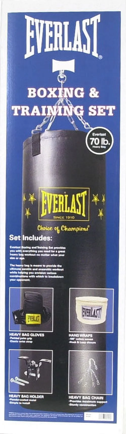 The Everlast boxing and training set is your key to fitness and boxing skills. It is designed to help you work out and develop better swinging skills, making it both functional and durable. To start training and conditioning in style, you need this sports gear, so you can kick into action in no time while working out your muscles and staying fit. Try shadow boxing using the included hand wraps for a new kind of workout, and it also comes with boxing gloves and hand wraps, as well. In addition, a bracket mount and chain assembly are provided to securely hold the boxing bag to the ceiling, making it an ideal choice for you and useful addition to your workout accessories. The chain is also adjustable, so you can choose your height or change it when needed.