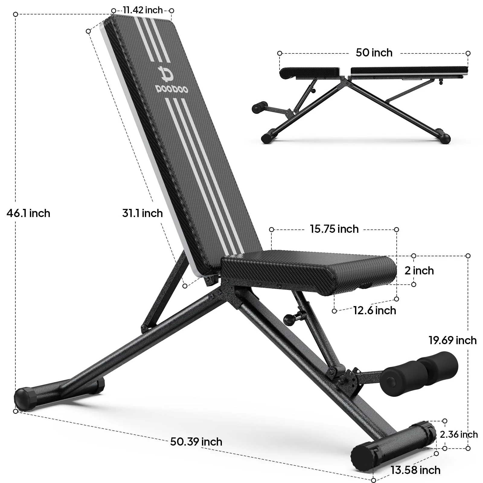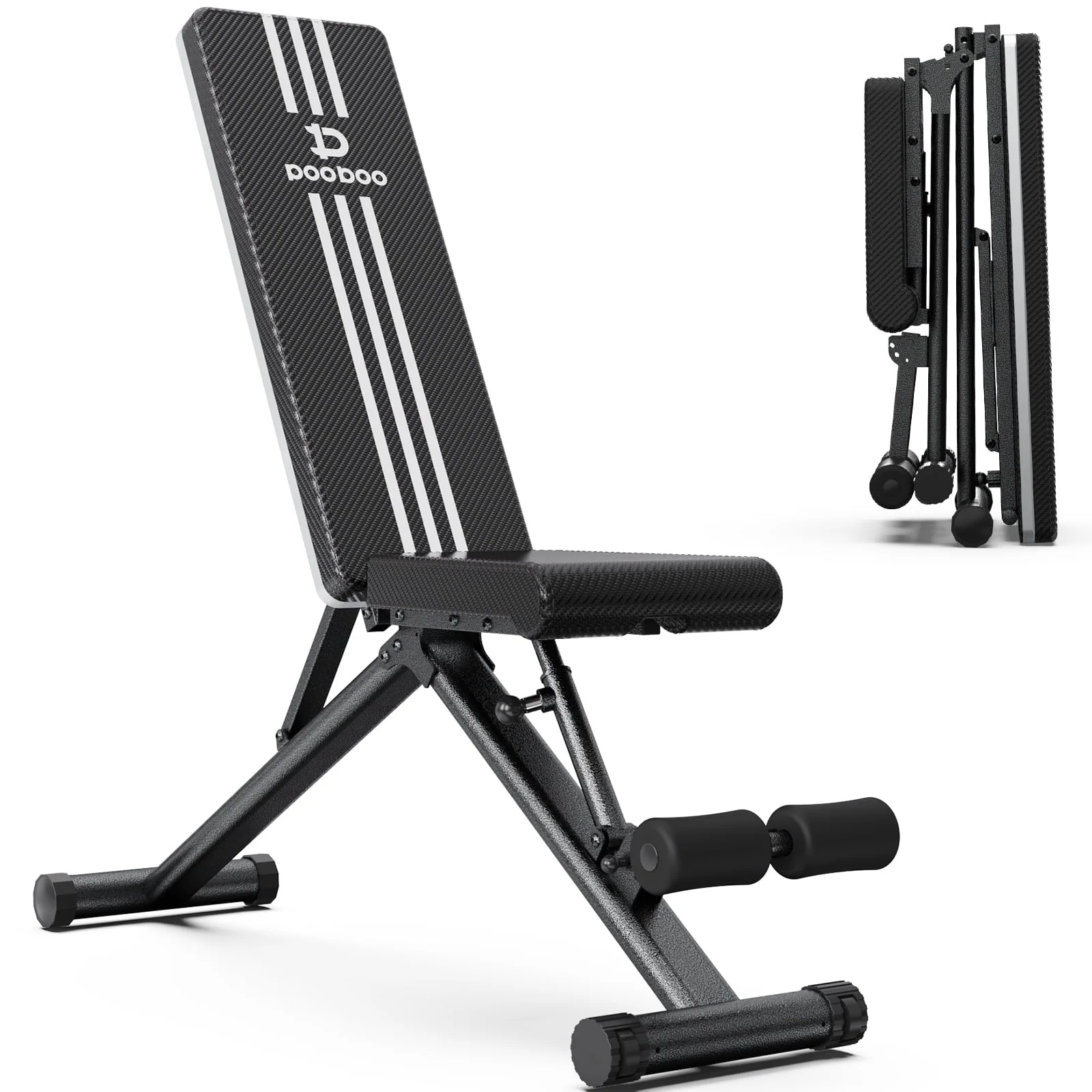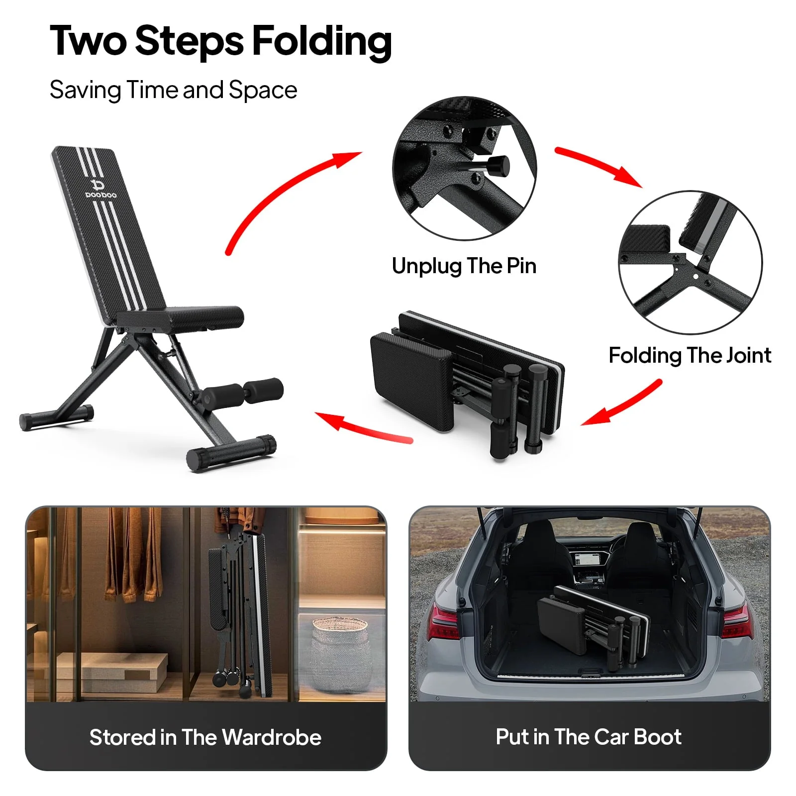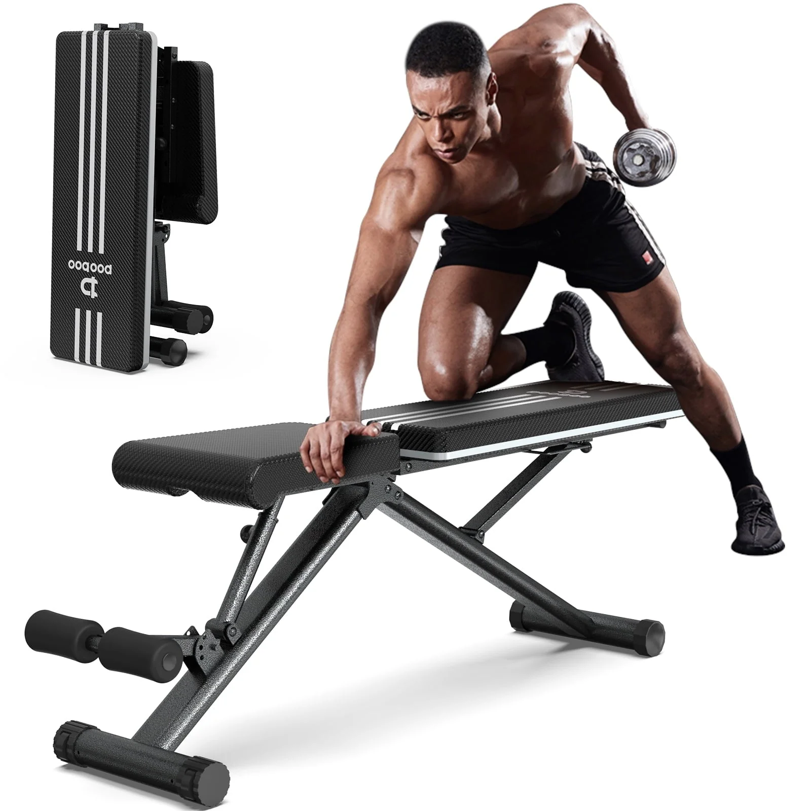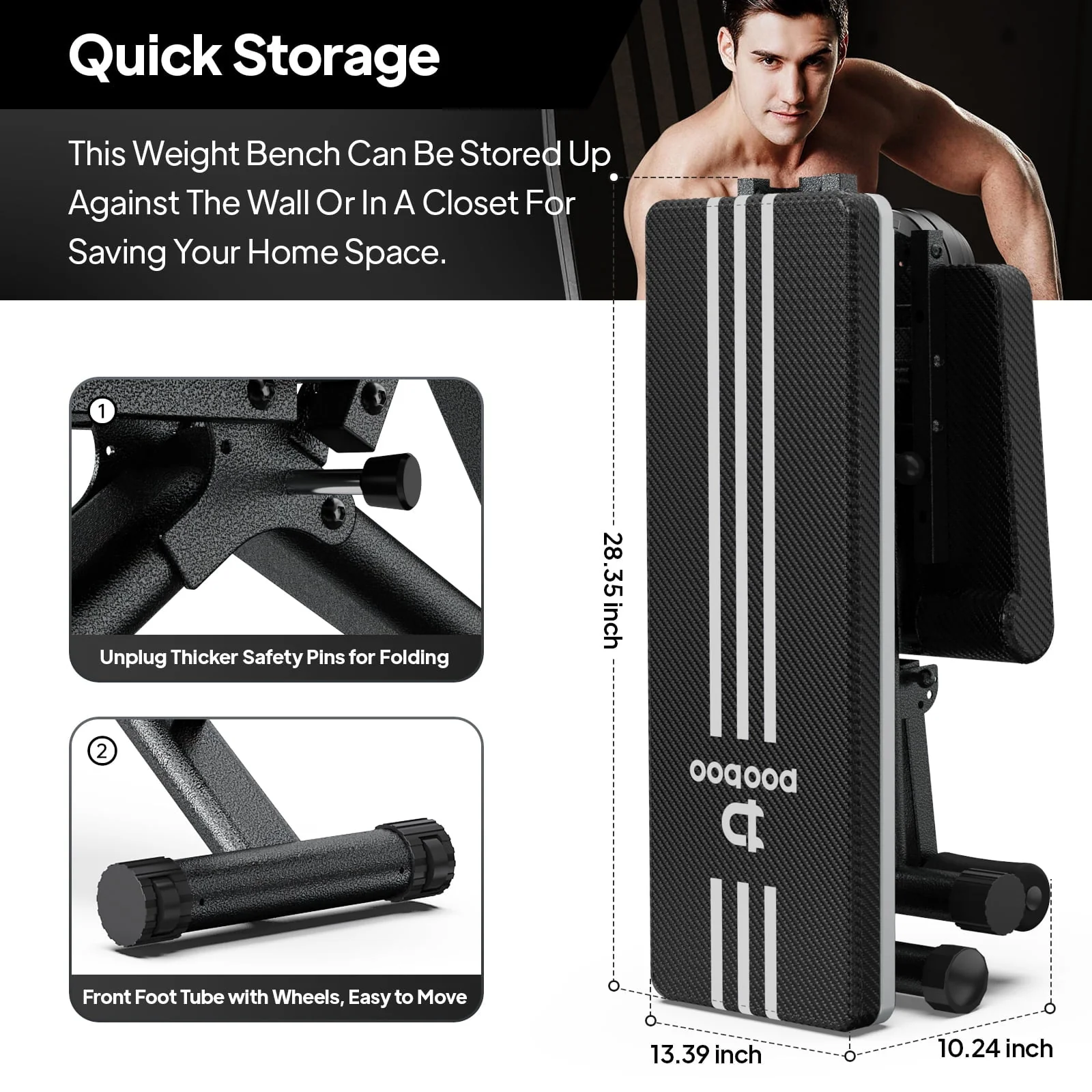 spongy foam provides a comfortable experience for exerciser. The pooboo weight bench allows the body builder to quickly fold and store it at the end of the training, greatly saving space and time.