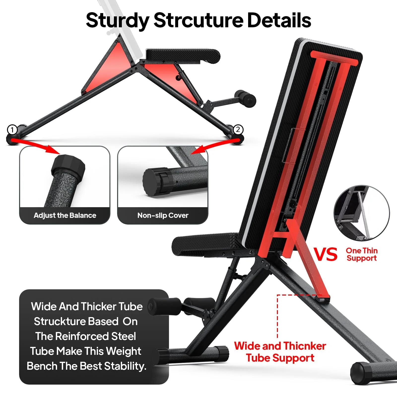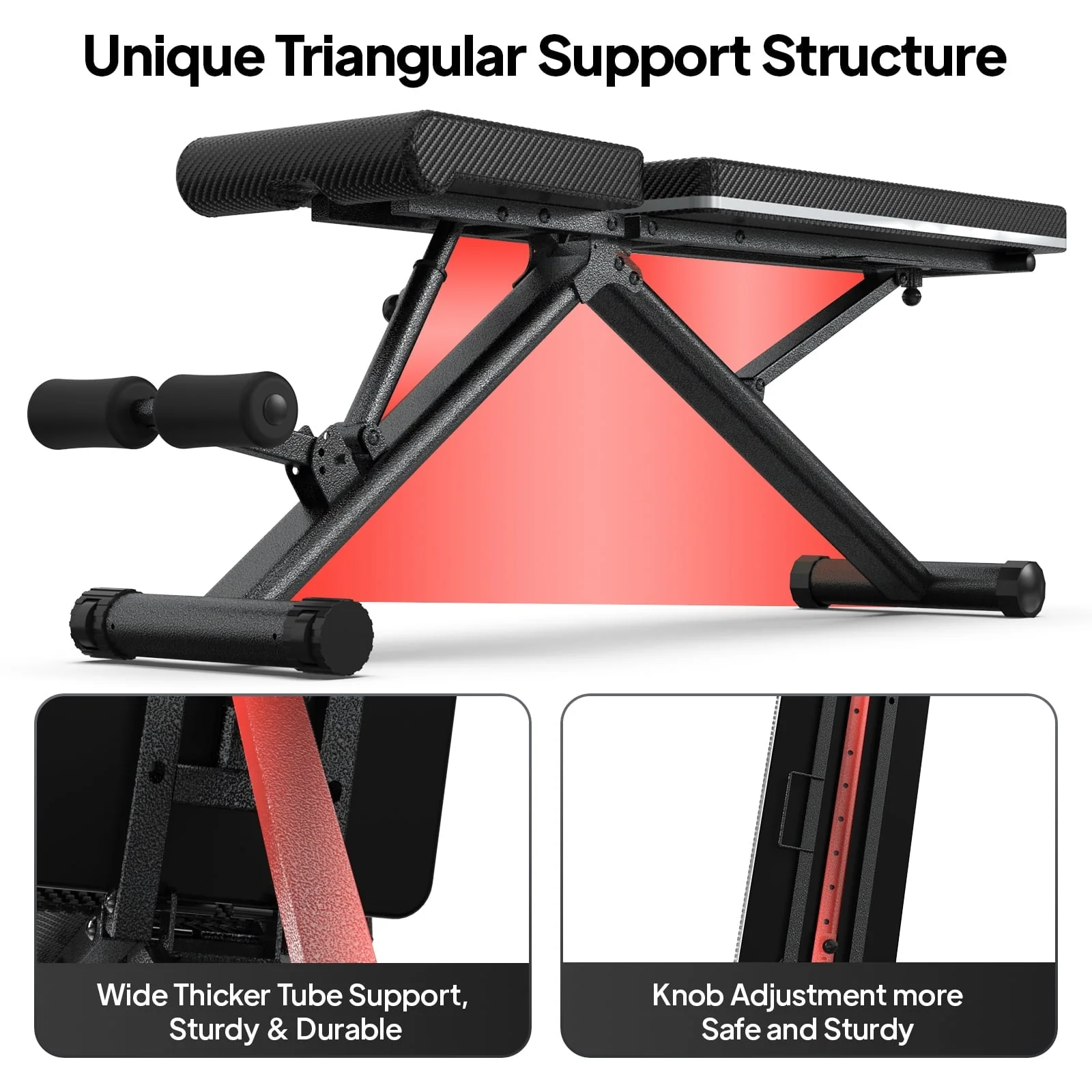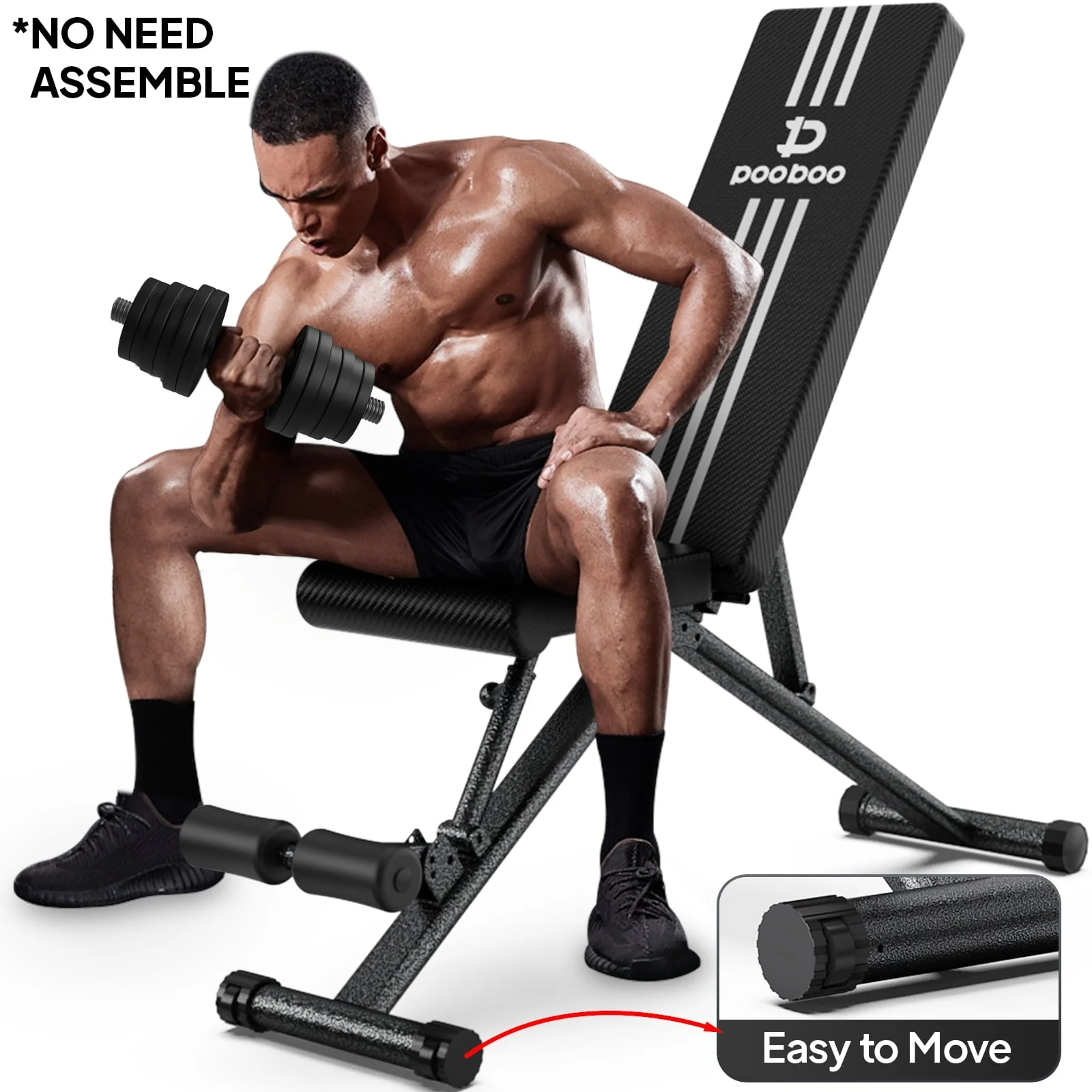 is made from heavy-duty commercial quality steel, and its triangular design both make sure the stability and safety. Pooboo workout bench is Installation Free, easy to start. The wear resistance updated PU leather and thickened