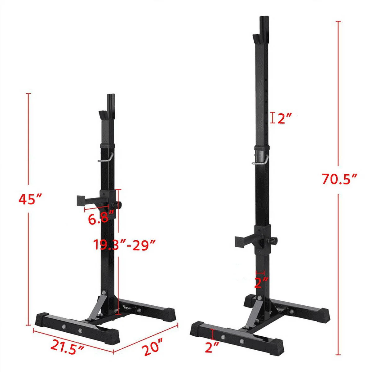 • 2 - Piece Adjustable Squat Stand Rack or Barbell Free Press Bench, Black