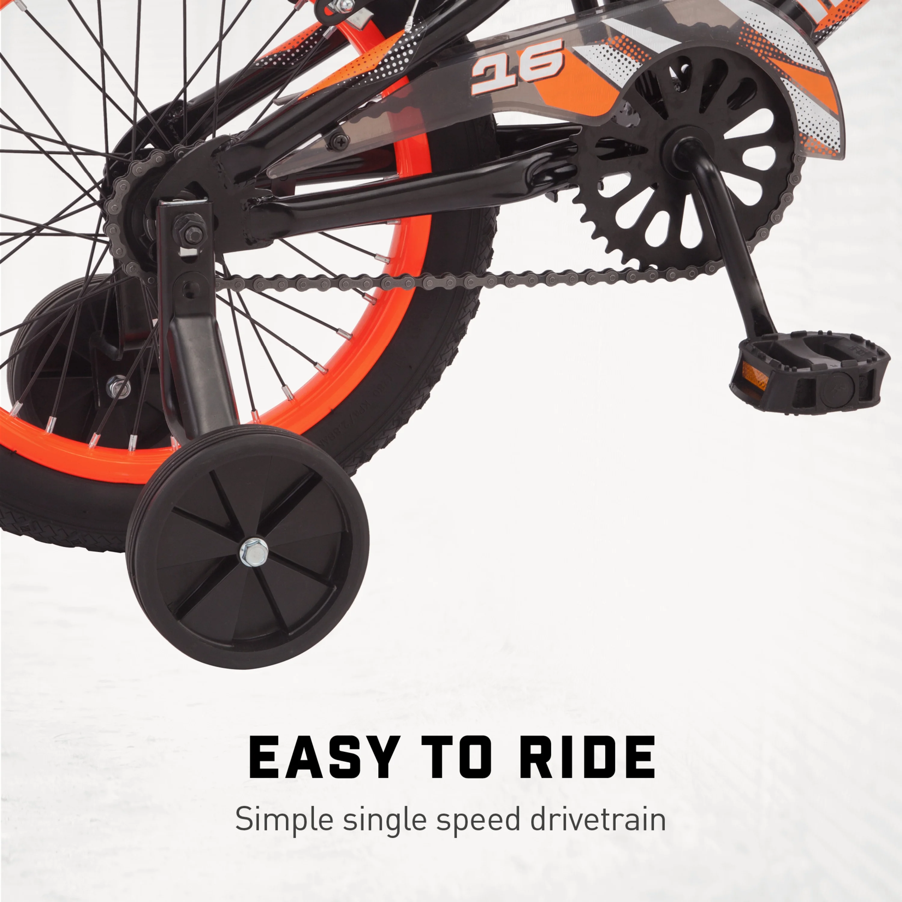 - Front and rear caliper brakes help young riders learn how to use 'big kid' brakes