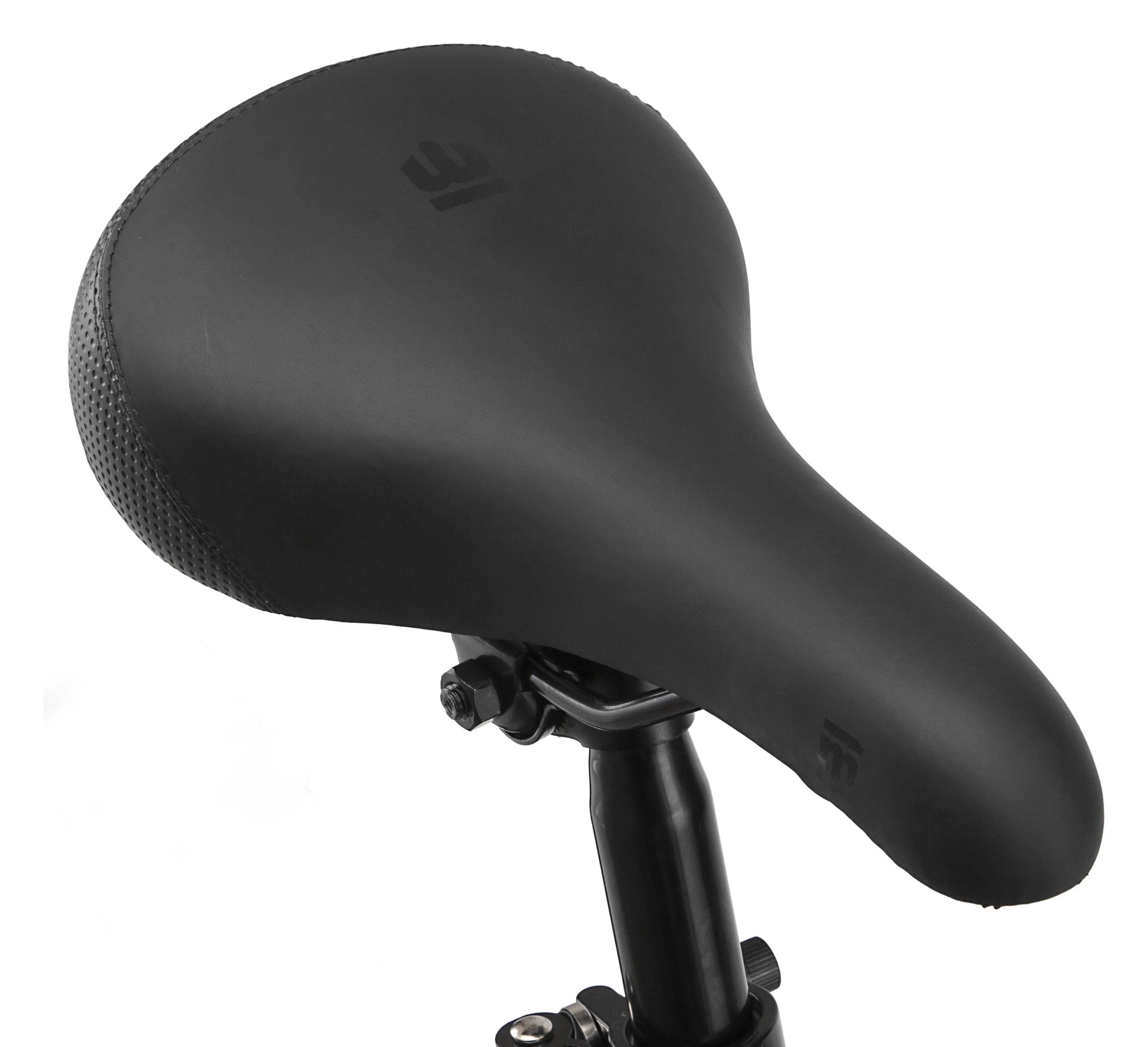 - Alloy double wall rims with 2.3-inch wide mountain tires provide lightweight strength and improved traction.