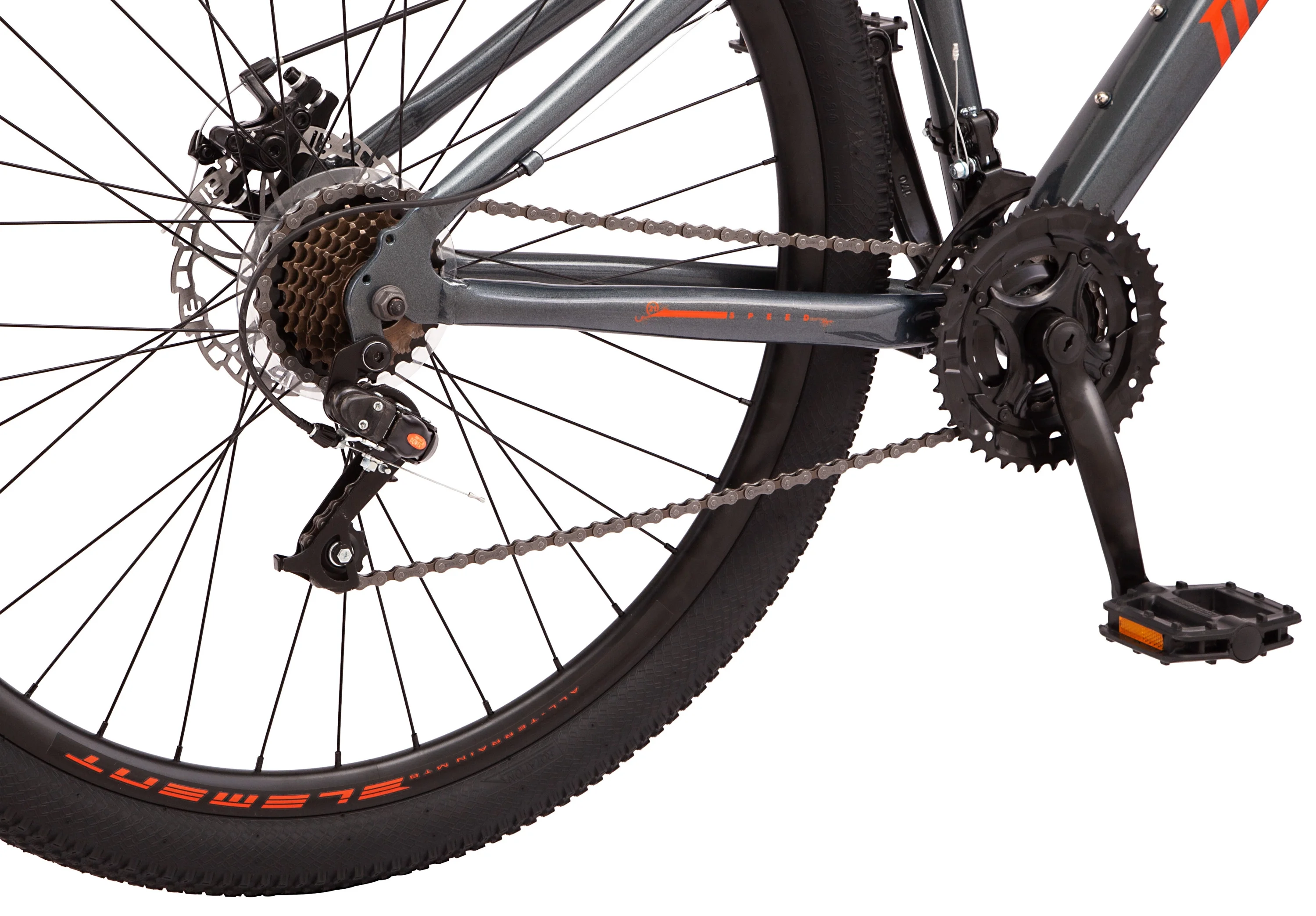 - Element suspension fork helps smooth out bumps in the trail for a more comfortable ride.