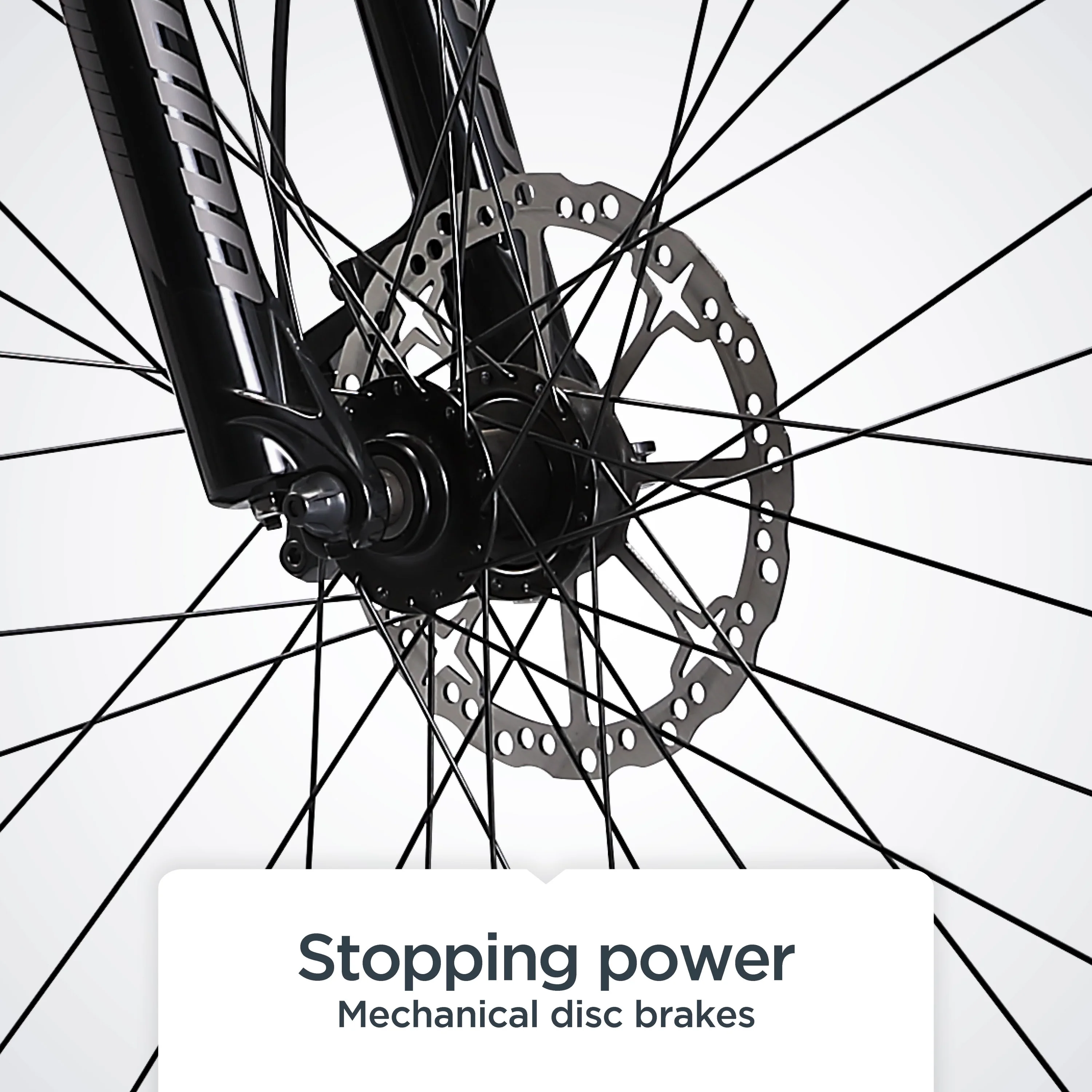 - Front and rear mechanical disc brakes deliver superior stopping power.