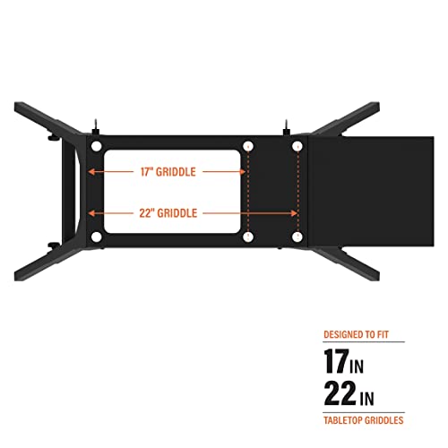 Universal Griddle Stand with Adjustable Leg and Side Shelf - Made to Fit 17" or 22" Propane Table Top Griddle - Perfect Take Along Grill Accessories for Outdoor Cooking and Camping (Black)