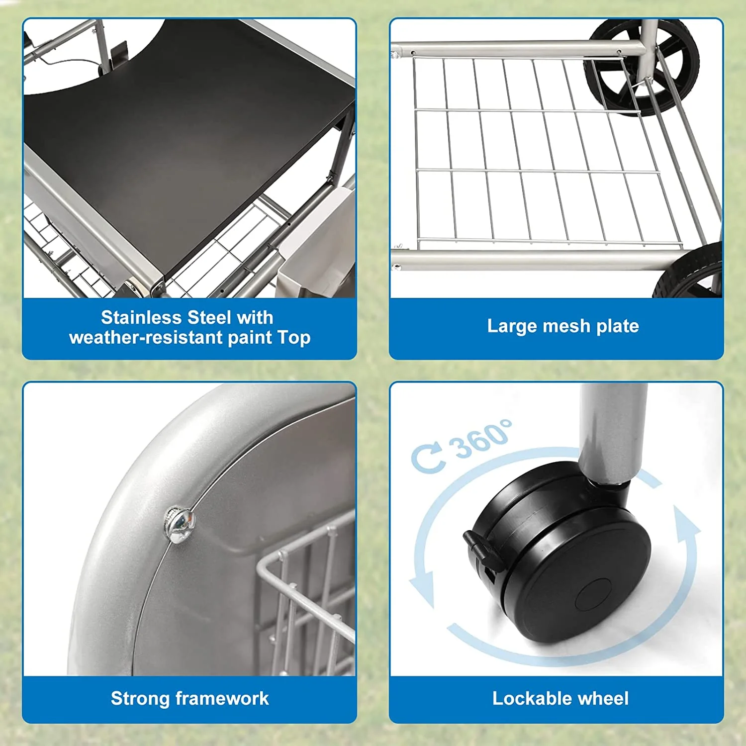 - Upgrade Your Outdoor Grilling Game: This grill stand cart allows you to keep all your grilling essentials within easy reach, making it perfect for any outdoor gathering or occasion.