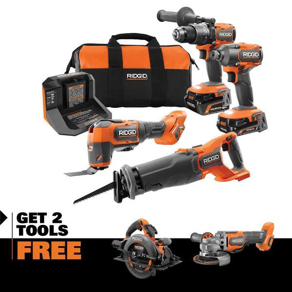 RIDGID introduces the 18V Brushless Cordless 4-Tool Combo Kit w/ 18V Brushless 7-1/4 in. Circular Saw, 18V Brushless 4-1/2 in. Angle Grinder. RIDGID brushless motor technology delivers maximum performance and longer runtime. The 18V Brushless 1/2 in. Hammer Drill delivers up to 800 in./lbs. of torque. The 18V Brushless 3-Speed 1/4 in. Impact Driver delivers 20% faster driving compared to the previous model and delivers a powerful 2,300 in./lbs. of torque. The 18V Brushless Reciprocating Saw offers 20% faster cutting compared to the previous model and features a premium orbital action switch. The powerful brushless motor in this 18V oscillating multi-tool gives users the ability to make fast, precise cuts. This Kit also includes (2) MAX Output batteries which provide more power and more runtime. As always, this Brushless 4-Tool Combo Kit is 100% compatible with all RIDGID 18V batteries. Best of all, this combo kit is backed by the Industry's Only Lifetime Service Agreement, simply register within 90 days of purchase for FREE Parts, Free Service, For LIFE. The R9225 includes a Brushless 1/2 in. Hammer Drill/Driver, Brushless 3-Speed 1/4 in. Impact Driver, Brushless Multi-Tool, Brushless Reciprocating Saw, Auxiliary Handle, Wood Cutting Reciprocating Saw Blade, Oscillating Multi-Tool Accessories, 2.0 Ah and 4.0 Ah MAX Output Batteries, Charger, Tool Bag, Extra Brushless 7-1/4 in. Circular Saw, Blade, Extra Brushless 4-1/2 in. Angle Grinder, and Operator's Manual.