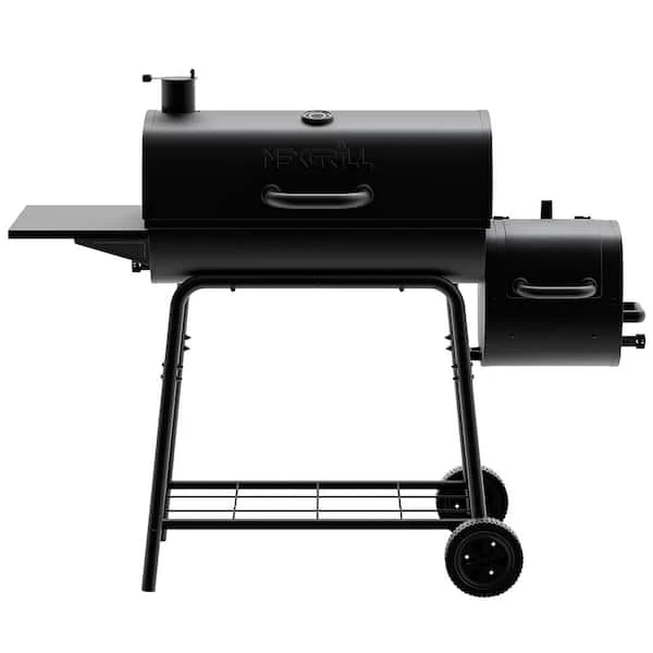 Meet the new Nexgrill 29 in. Barrel Charcoal Grill with Smoker. This unit offers the versatility of grilling and smoking all in 1 high quality, affordable, ready for anything grill. With 741 sq. in of total cooking space and porcelain steel wire cooking grids, this BBQ offers plenty of space for your cooking needs. The large main barrel offers multiple charcoal tray positions for optimal temperature control and a spring loaded charcoal chimney for efficient airflow. The 12 in. W x 12 in. D offset box can be used as a smoking chamber or an efficient cost savings grill zone for small meals. The box is constructed with a convenient to clean pull out charcoal drawer. The built-in easy to read temperature gauge and side shelf are a couple of the other great features that make this grill convenient and easy to use. Make your next grill a Nexgrill.