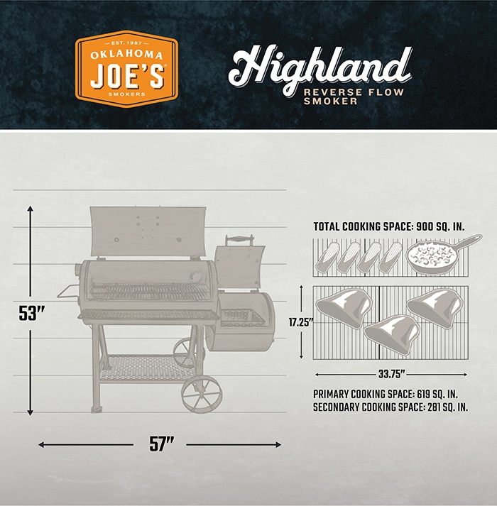 Enjoy enhanced performance and versatility with the Oklahoma Joe's Highland Reverse Flow Offset Smoker. Optional smokestack locations let you switch between reverse flow smoking and traditional offset smoking, while 4 removable baffles ensure even heat and smoke throughout the cooking chamber. Made from high-temperature, heavy-gauge steel and equipped with a large charcoal basket, this reverse flow offset smoker is as convenient as it is durable.