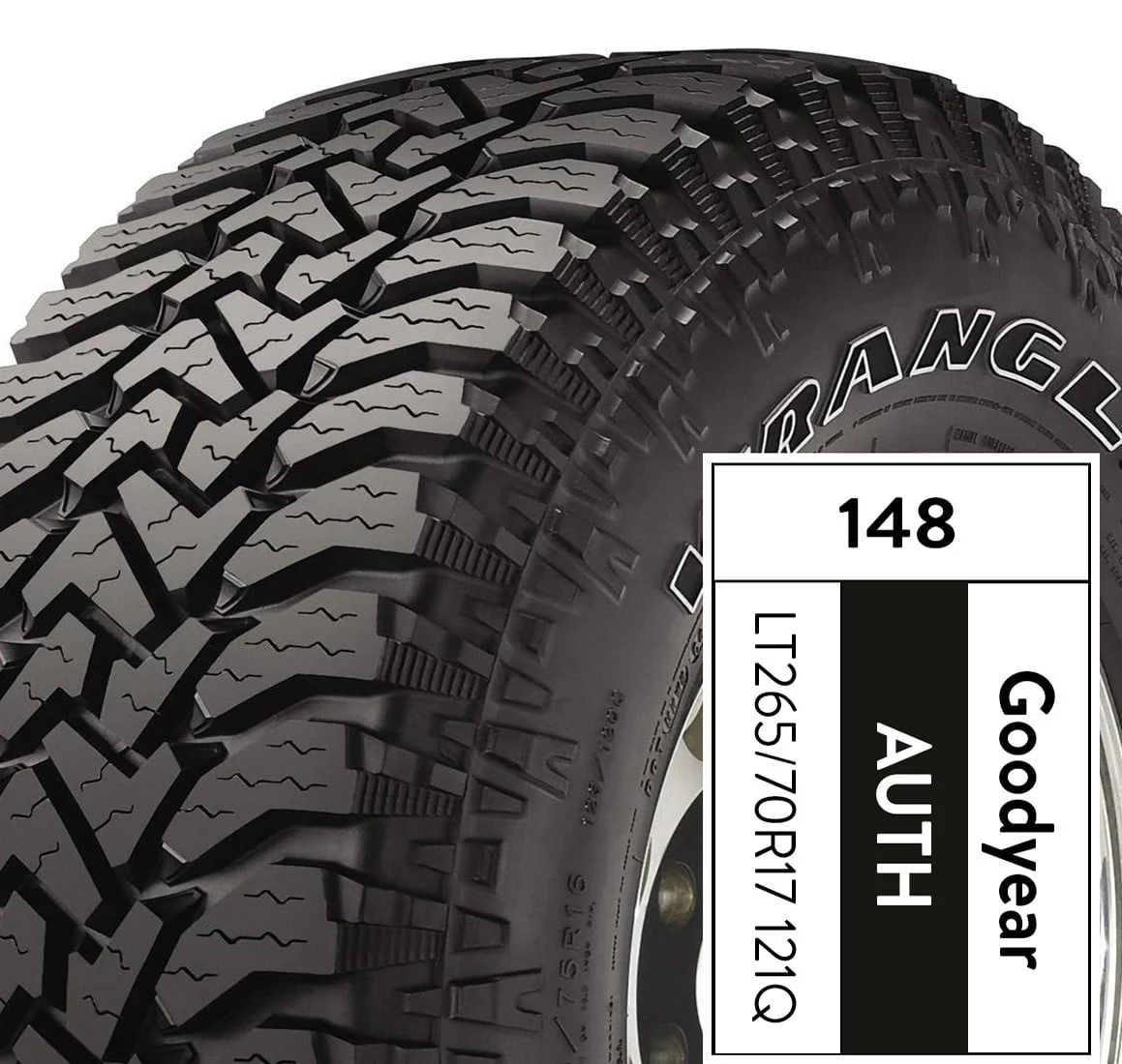 The Goodyear Wrangler Authority A/T LT265/70R17 121Q tire is is a rugged All-Season tire for trucks and SUV's. This is a great fit for truck and SUV drivers who want confident traction. Whether it's driving to work on the highway or maneuvering a dirt road to a campsite, this tire offers ruggedness with a quiet ride. Goodyear Trailmark Tire offers you a safe option for driving your vehicle. It is specially designed to perform well in both on- and off-road driving conditions. The Goodyear Trailmark tire has a stylish sidewall design that enhances the rugged look of your car. It has deep grooves to get rid of water and mud quickly as you drive along the road. Tire installation from $12 per tire.