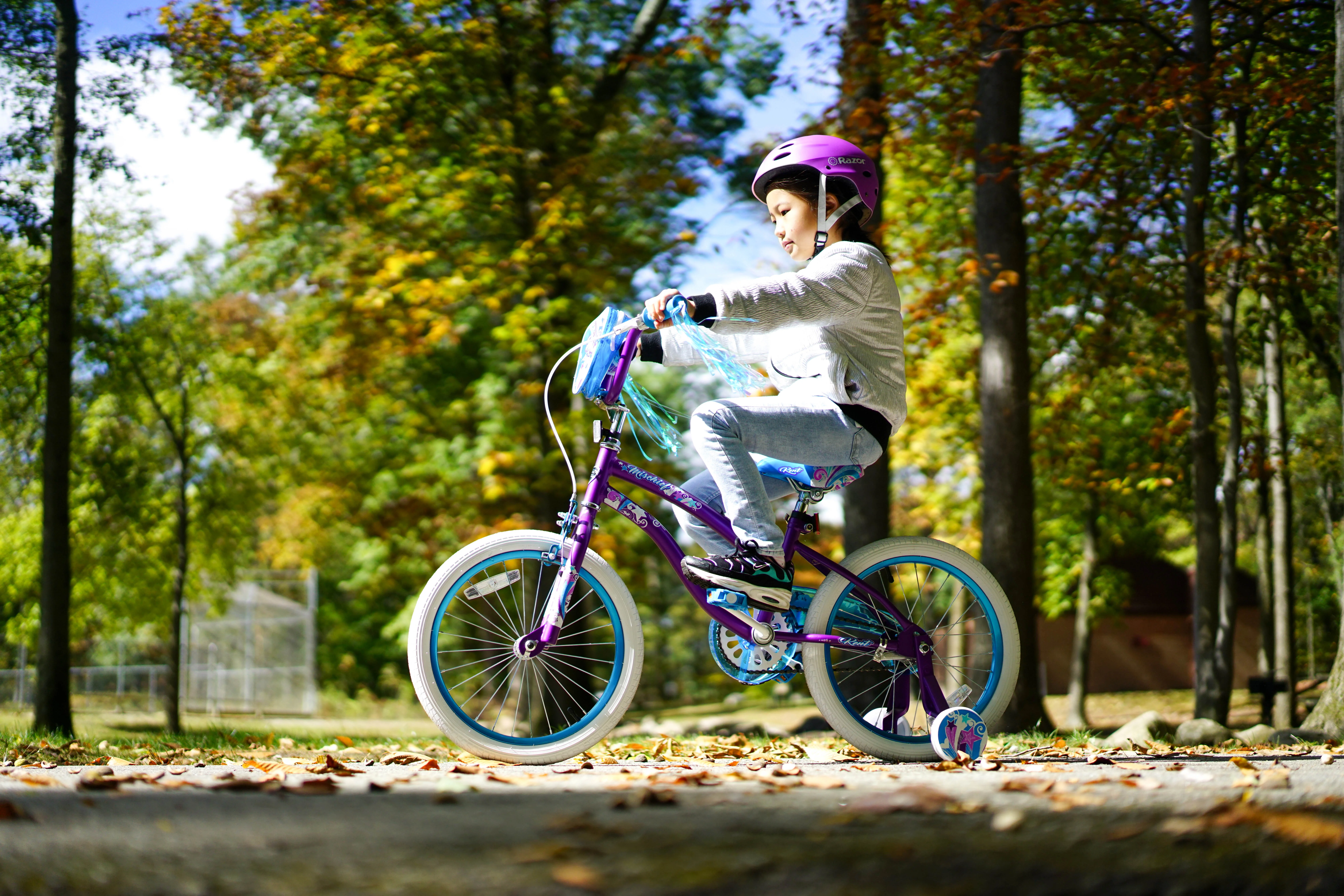 - Purple girls' bike fits kids 3'8" and taller