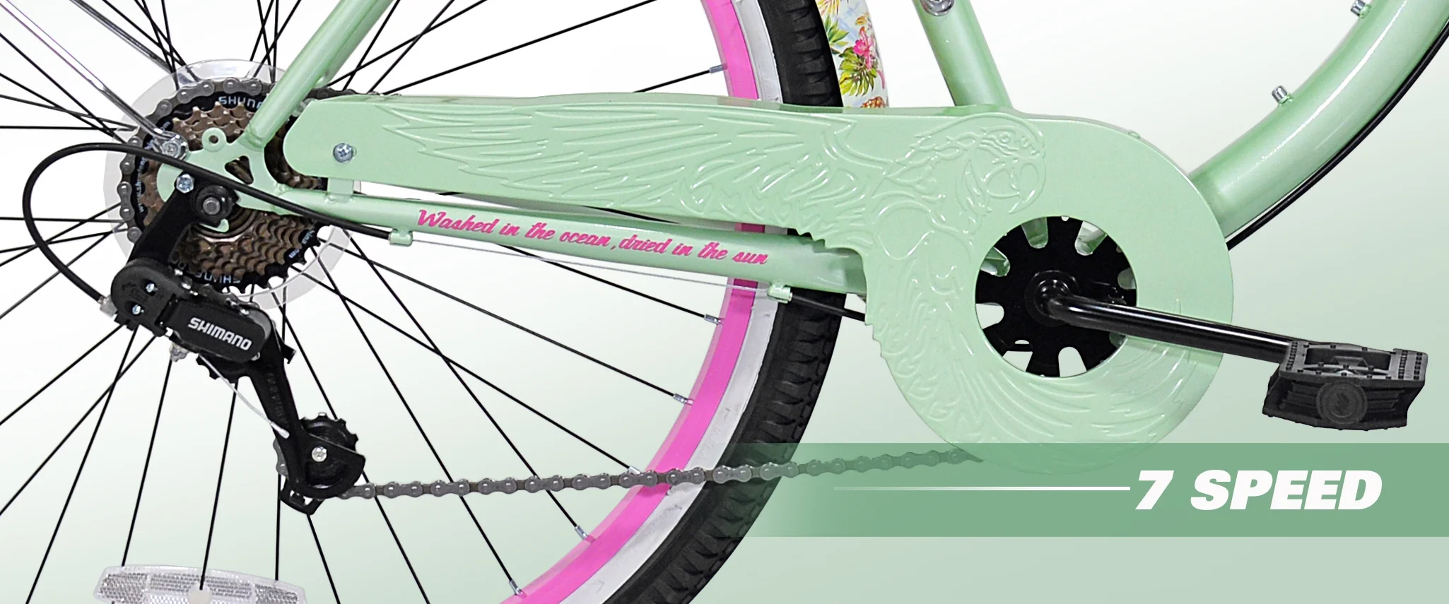 Margaritaville 26" Multi-Speed Cruiser Women's Bike, Green, for Height Sizes 5'2" and Up: