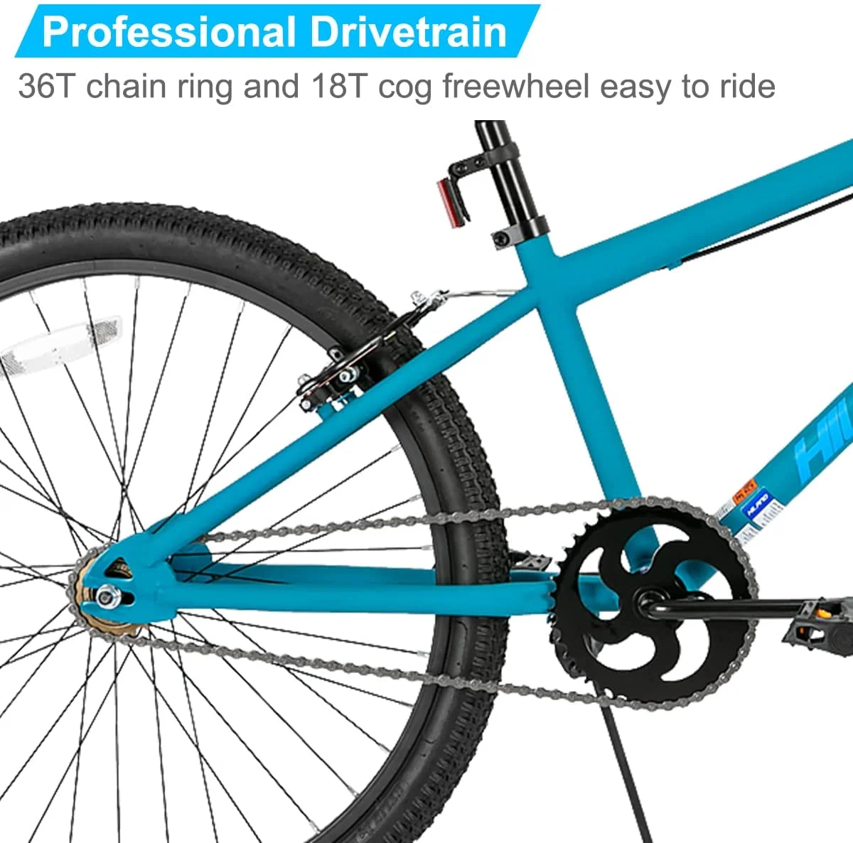 - Single Speed: The drivetrain features 140 cranks with a 36T chainring and 18T freewheel, making it easy to ride; The single-speed drivetrain eliminates the complexity of gears and provides direct power transmission