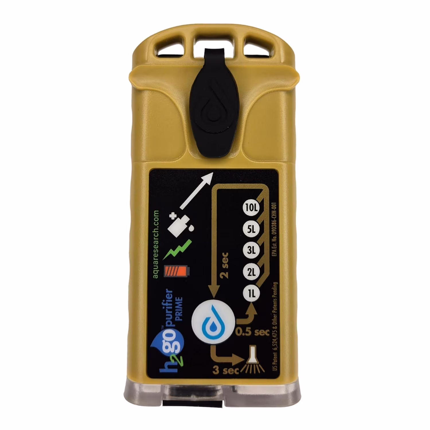 H2gO Prime Survival Water Purifier, 5 mg/L, Camping Water Purifier, Tactical Survival Gear, Emergency Water Filtration. Hiking Gear Essential with Virtually Unlimited Purification.