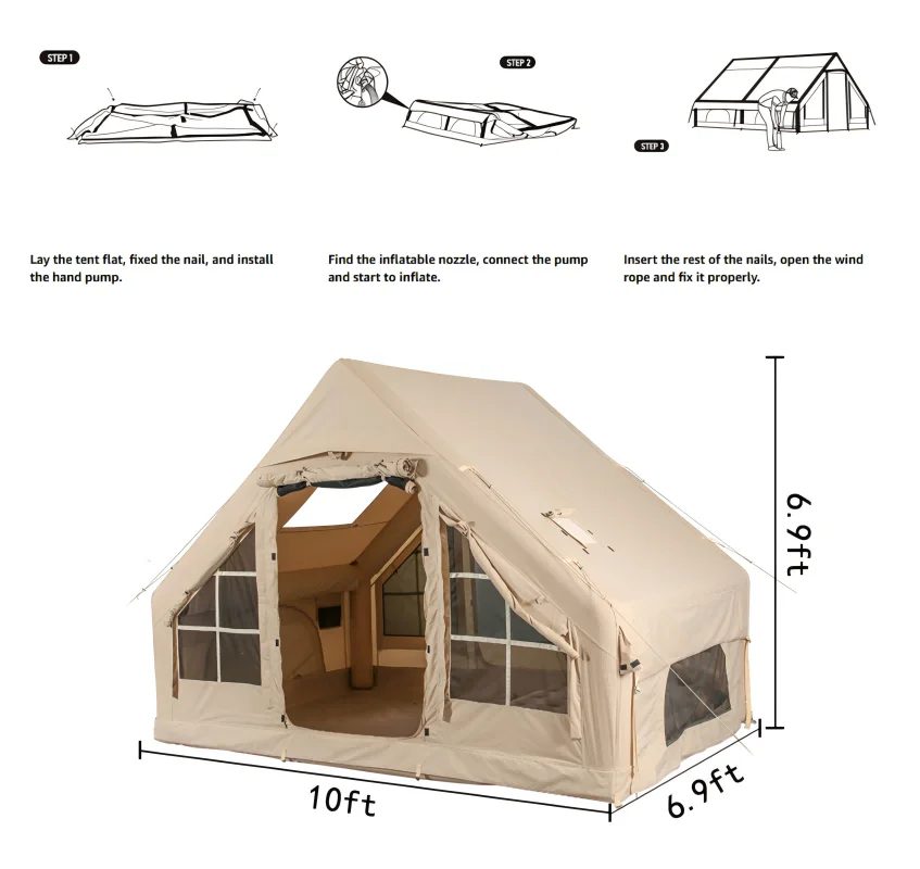 - Easy SetupWaterproofand Windproof Blow Up Tent