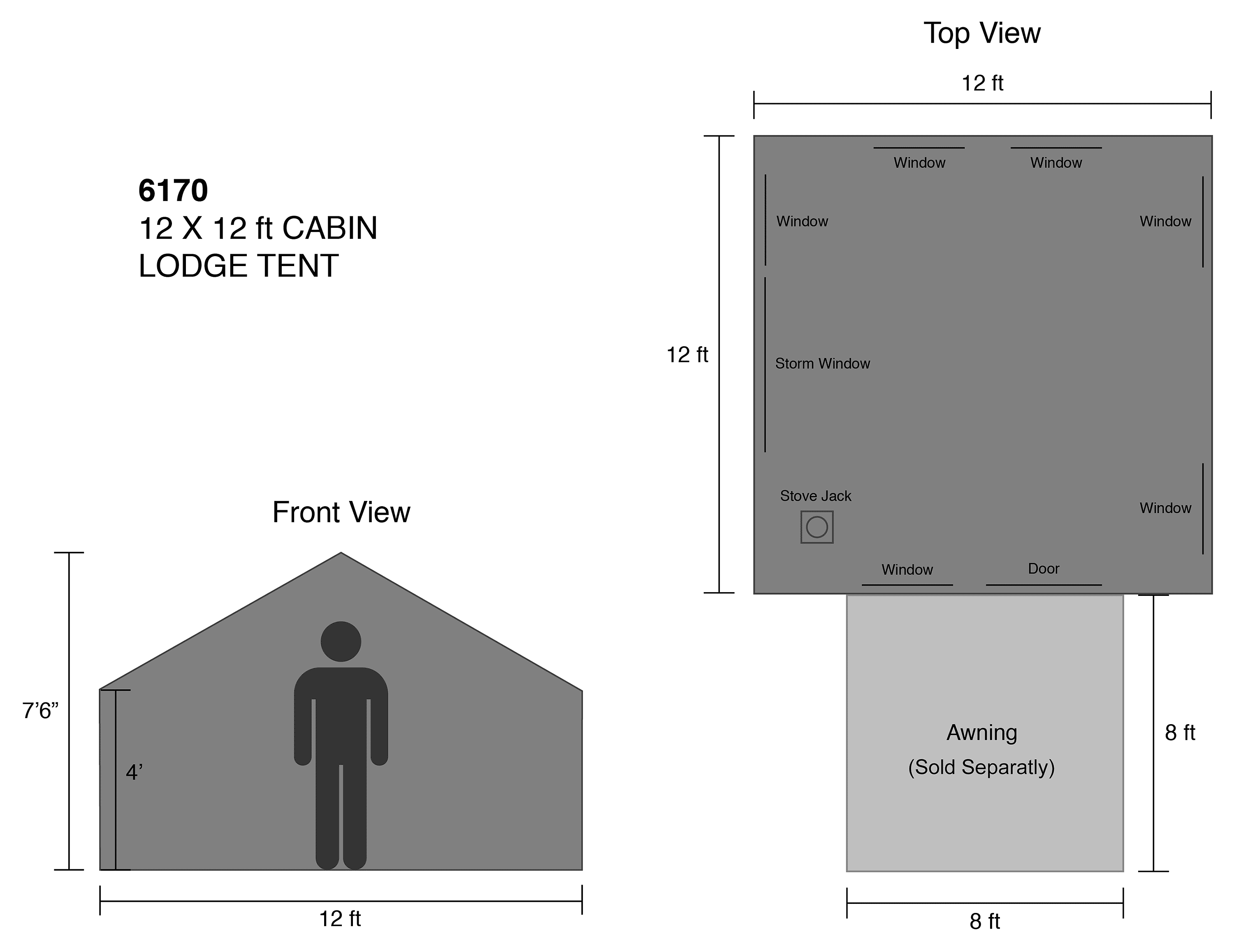 Roomy and rugged, the Kodiak Canvas 8-Person Cabin Lodge Tent offers proven Kodiak Canvas protection to larger groups of outdoor adventurers. Combining durable strength with refined design, this tent pairs a tall ceiling (7-1/2' peak) with a vertical wall design for a comfortable tent that's easy to walk around in. And it's large, D-shaped front door allows folks to enter and exit the tent without crouching. 6 large windows open and close from inside the tent and feature no-see-um, screen mesh for protected ventilation. This comfortable lodge design accommodates any weather, featuring a covered storm window and vents to circulate outside air, even when it's raining. Still a Kodiak Canvas tent, the Cabin Lodge still offers the strength and waterproof protection to stand up to heavy rains or lighter snows.