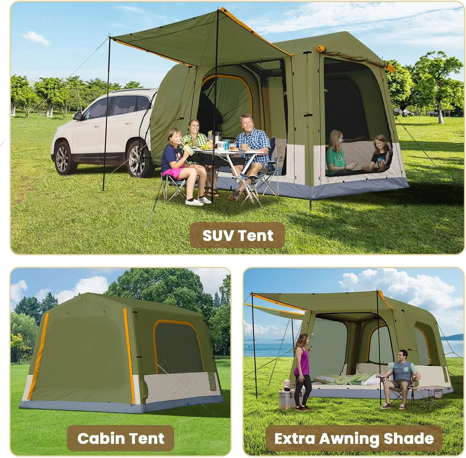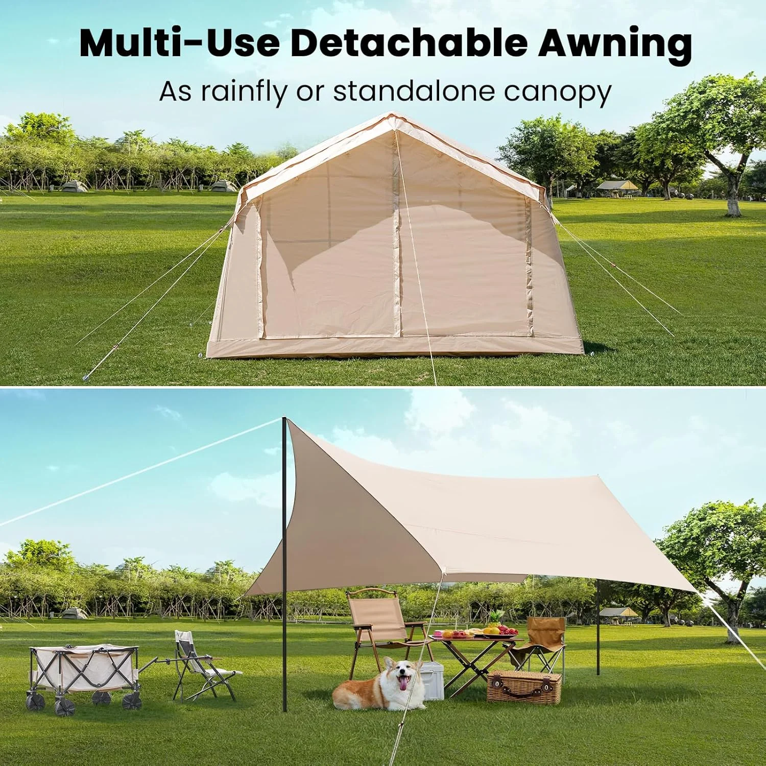 Weatherproof & Bug-Free Design :Made with waterproof 420D Oxford fabric (PU3000mm, UPF50+), featuring zippered double-layer windows and doors for complete protection from rain, wind, sun, and insects.