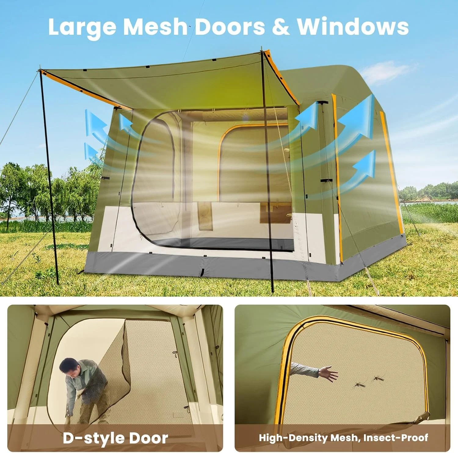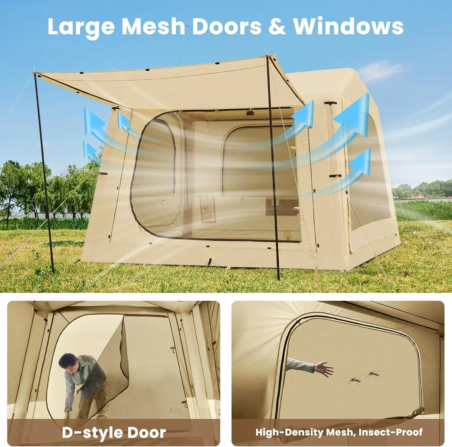 Superior Ventilation & Safety :Large mesh windows ensure excellent airflow. Important: During inflation, straighten the hose and stop when the gauge reaches green. In temperatures above 37°C/98°F, release some air to prevent over-expansion.