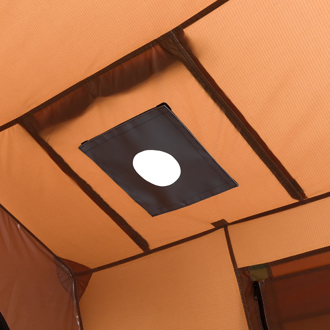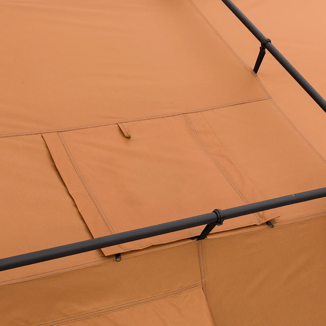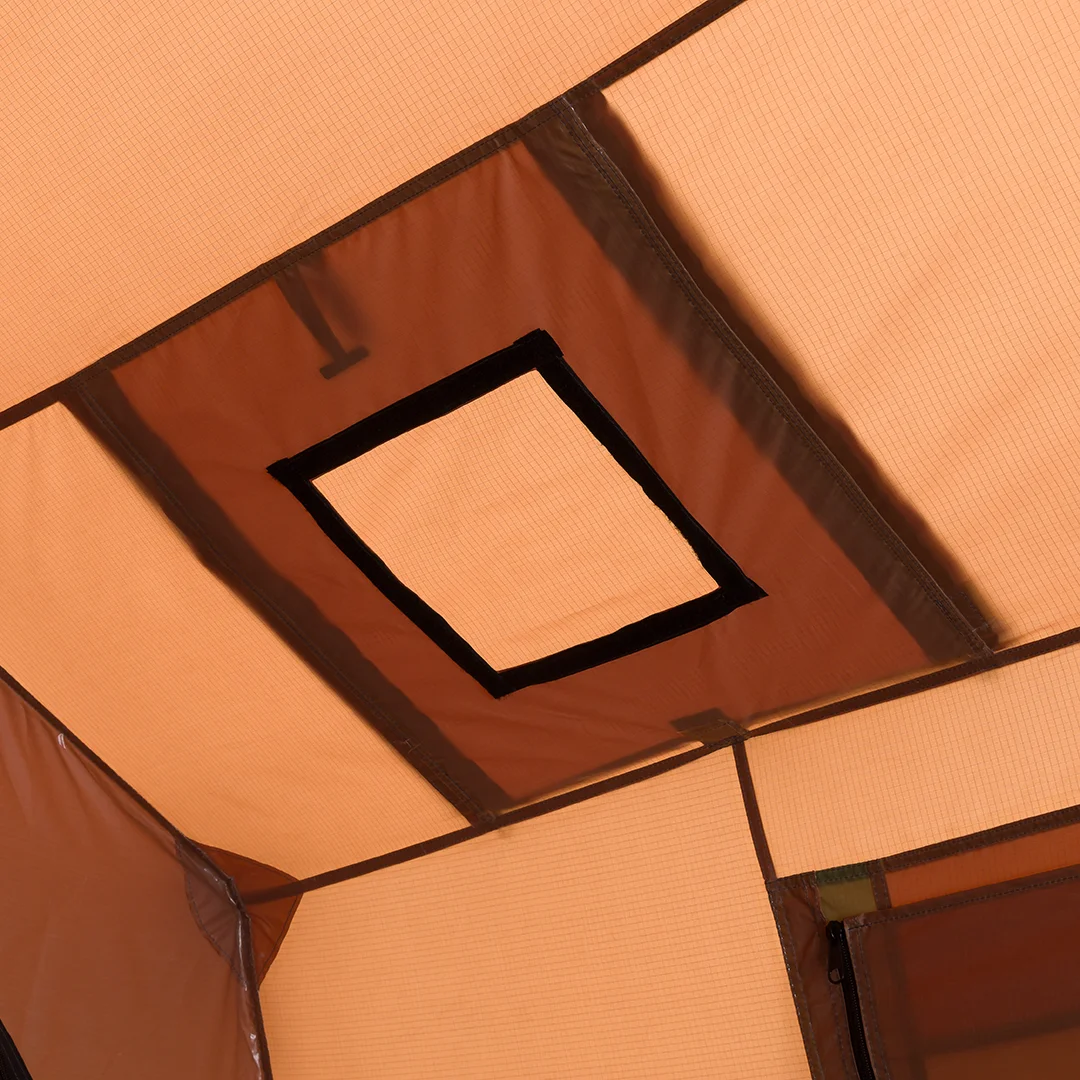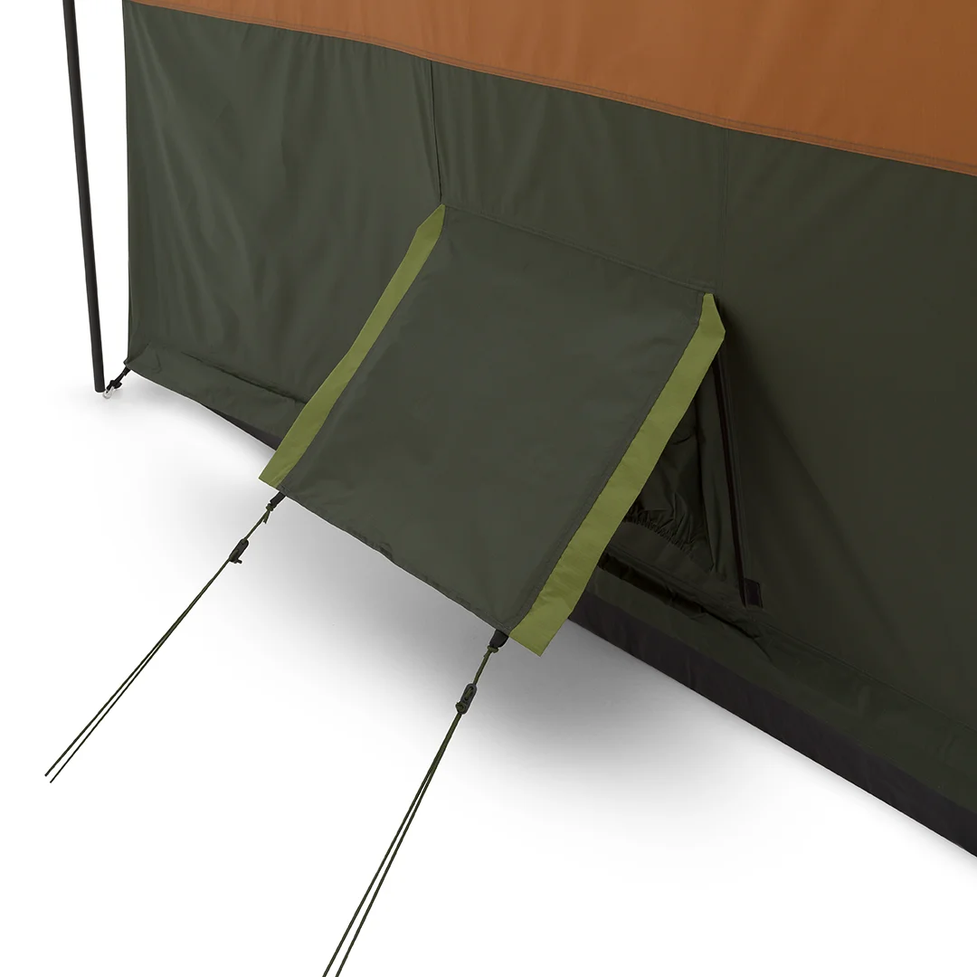 - Features 8 closeable mesh windows and two A/C vents for optimal air circulation. Side windows have gussets for ventilation during rainstorms