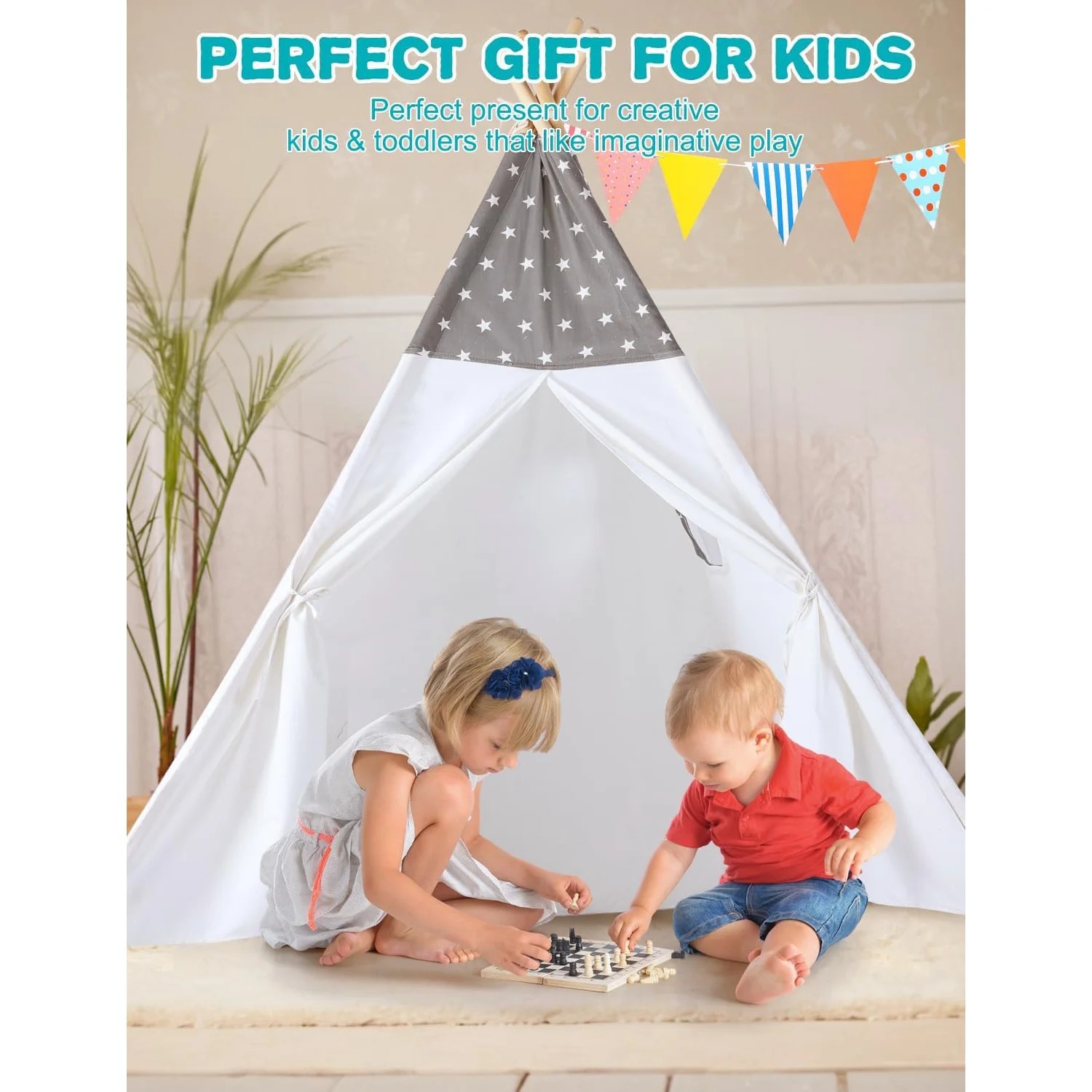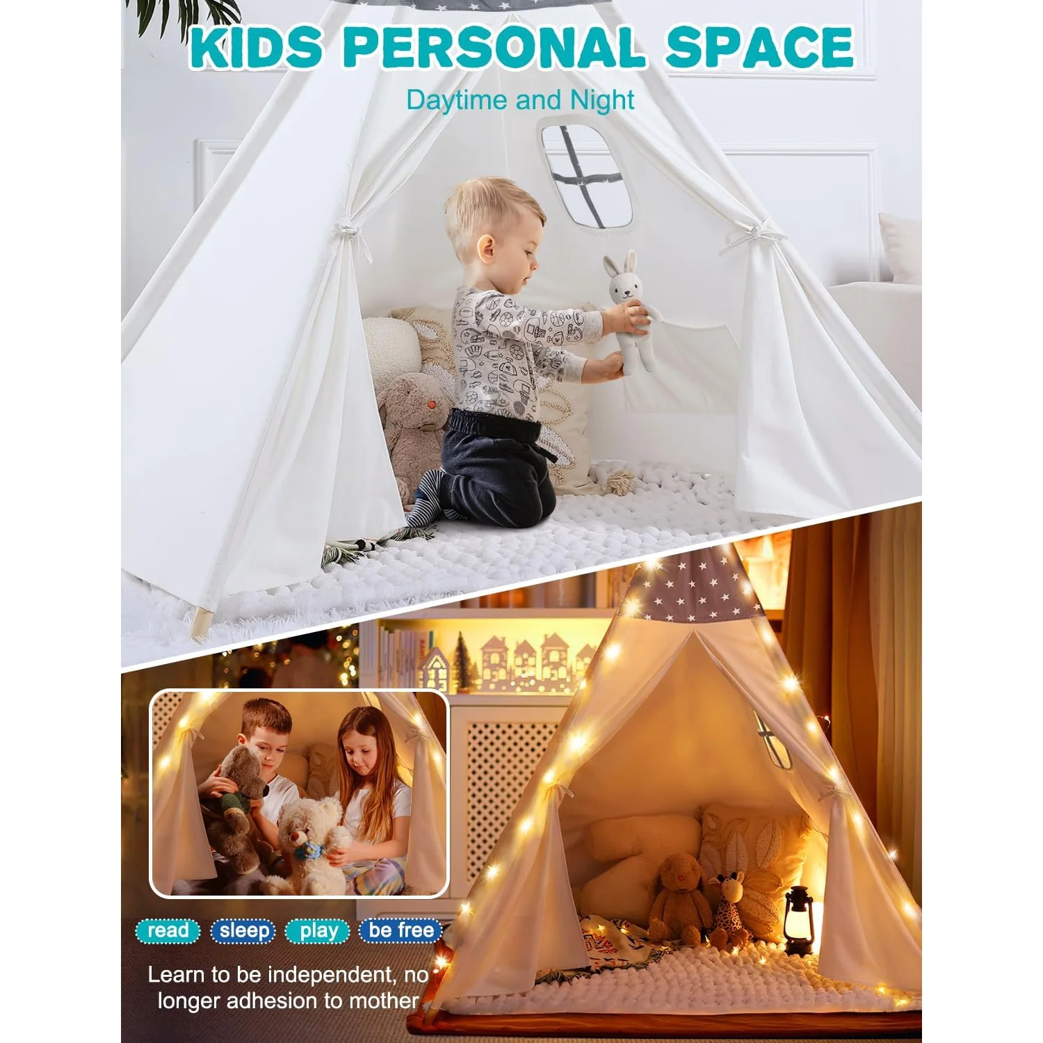 - Safe & High Quality: This tipi tent is made of 100% cotton. The teepee sticks are made of upgraded thickened solid wood poles for sturdiness. The toddler tent is built to the highest standards and is durable enough to ensure long-term use