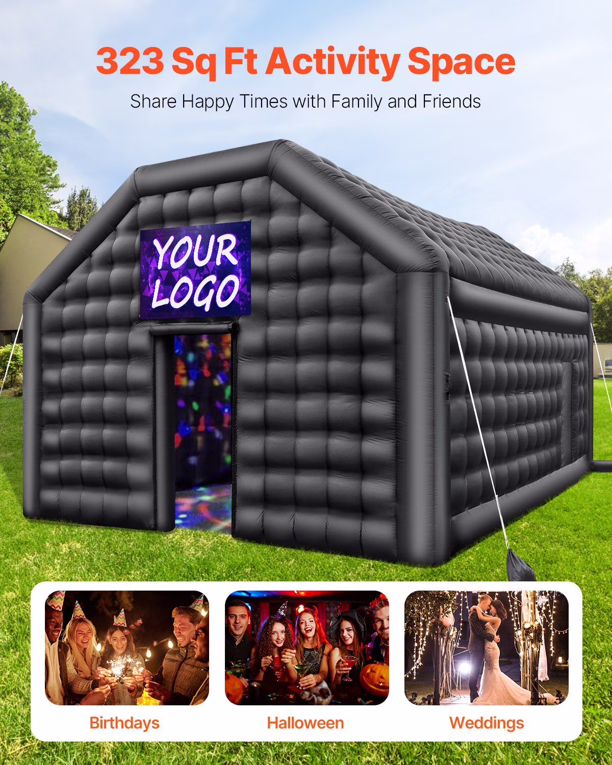 • Spacious Inflatable Nightclub: Enjoy 323 sq ft / 30 m² of ample space. This large inflatable nightclub is ideal for hosting birthday parties, weddings, family gatherings, and more.