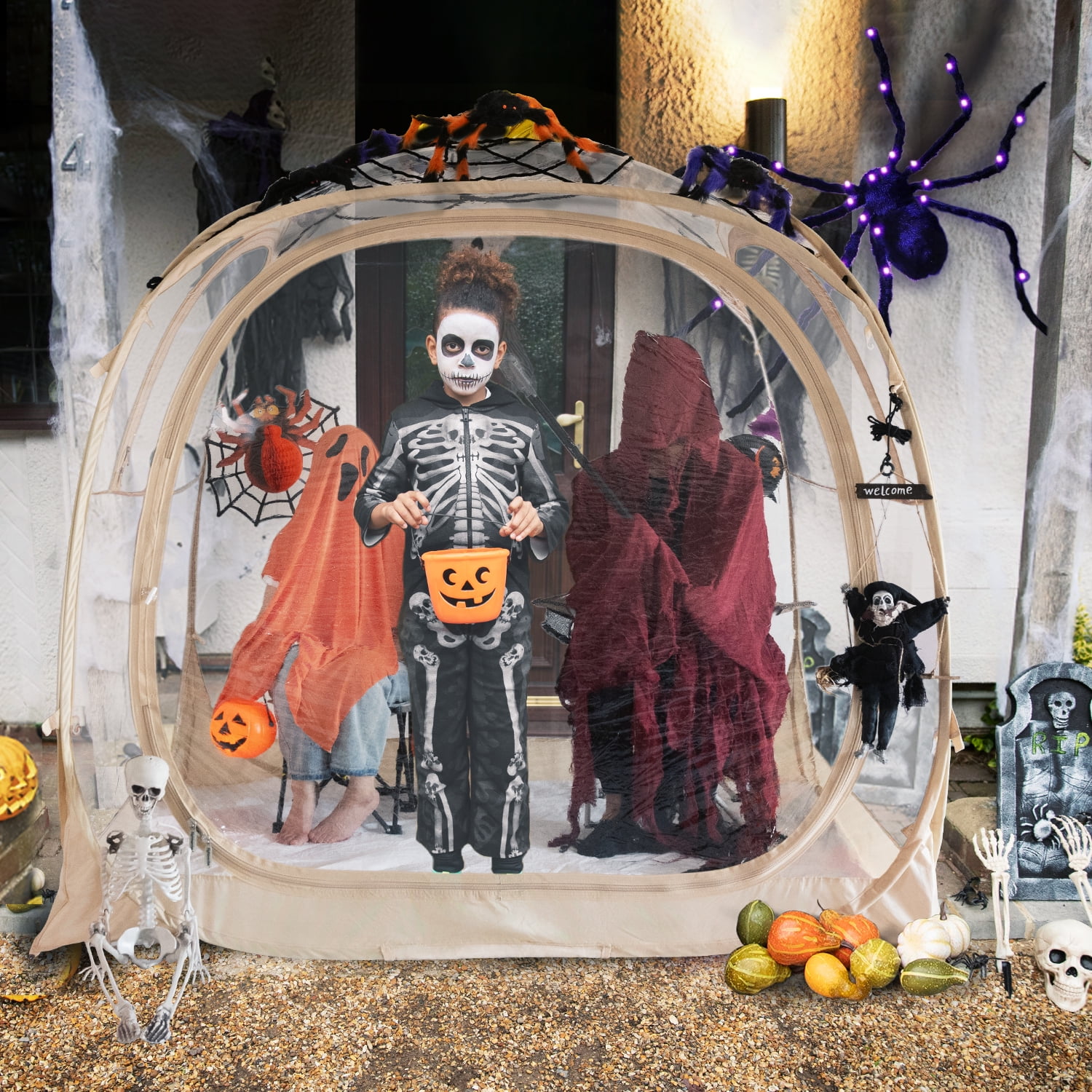 - Patent pending design: it comes with 1 top cover, it provides an all-day UPF 50+ UV protection. With 1 large door and 2 windows, this pod is excellent in air ventilation in hot weather, double-side zippers make it easy to zip from inside and outside alike, easy to get in & out. PE floor keeps the room & your personal belongings clean. Convenient extra hooks for your coat, bag or other items. For strengthen the stability in windy days, this shelter comes with 4 guylines and 8 stakes.