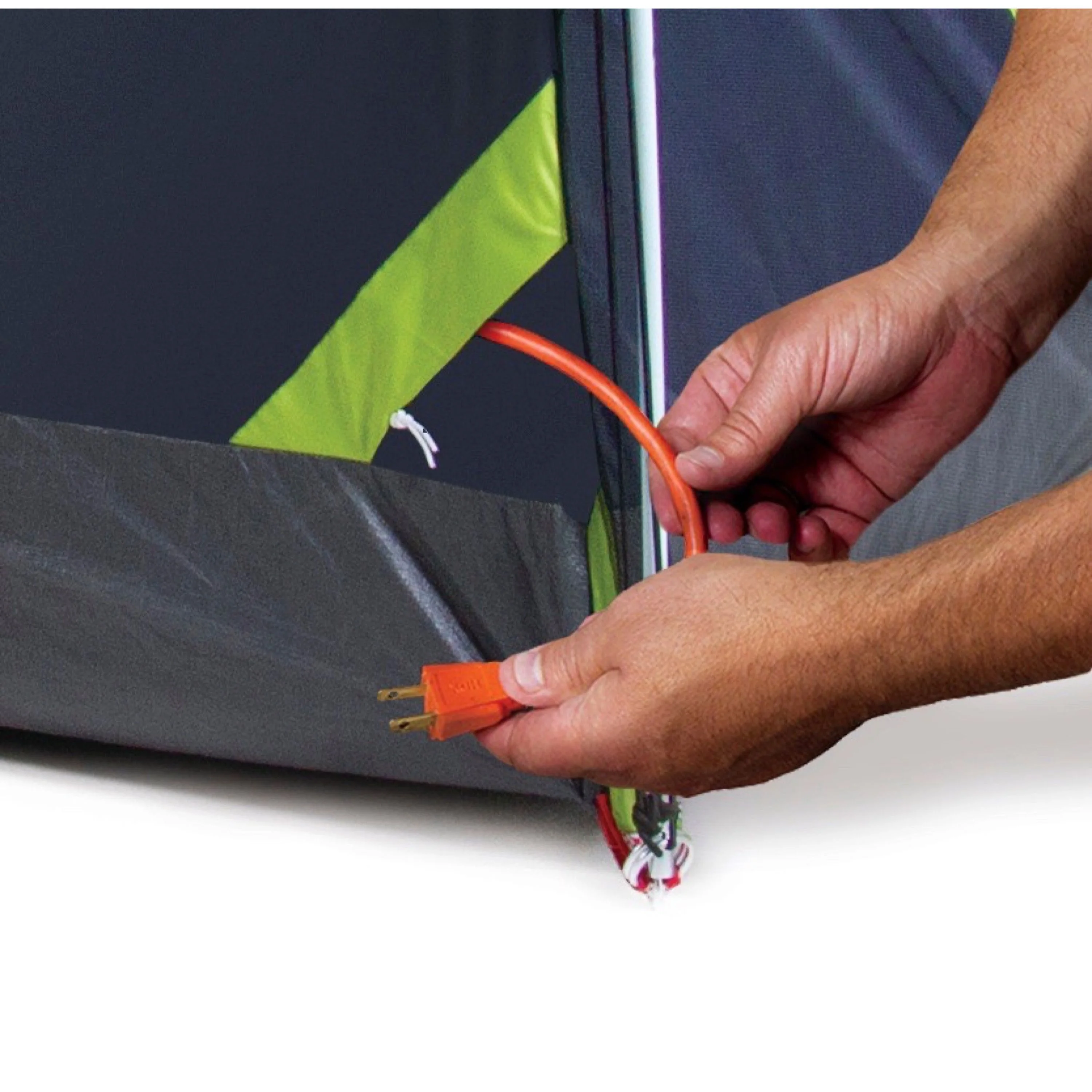 The Coleman Sundome 4-Person Camping Tent, 1 Room, Blue is designed for quick and easy setup, so you can spend more time enjoying the outdoors. Great for camping in warm weather, this backpacking tent is designed with large windows and a ground vent to help push warm air up and out to keep you comfortable. The Weather Tec system with patented welded floors and inverted seams helps ensure you stay dry if the weather turns, while the sturdy frame with Insta-Clip pole attachments stands up to 35+ mph winds. A rainfly with an integrated door awning is included to help keep rain from getting into the tent, and the durable Bodyguard 2X double-thick fabric is designed to withstand the elements for reliable use season after season. This dome tent offers enough room for one queen size air mattress and comes with built-in storage pockets to help keep your gear organized. An E-Port makes it easy to bring electrical power inside the tent. The Coleman Sundome 4-Person Tent sets up in only 10 minutes thanks to snag-free continuous pole sleeves and packs away compactly in the included carry bag.