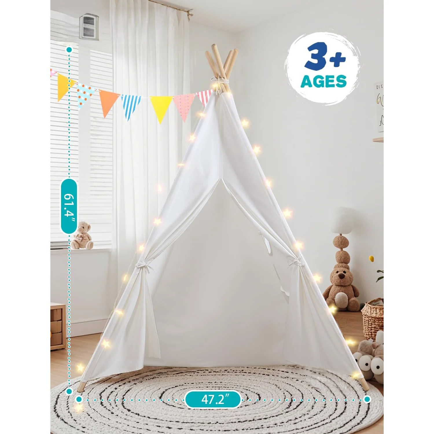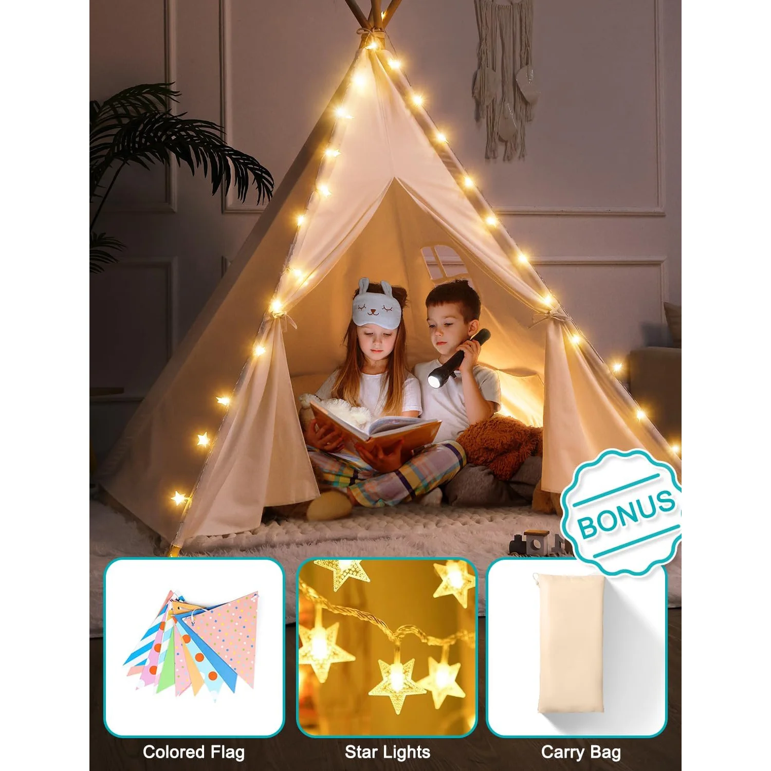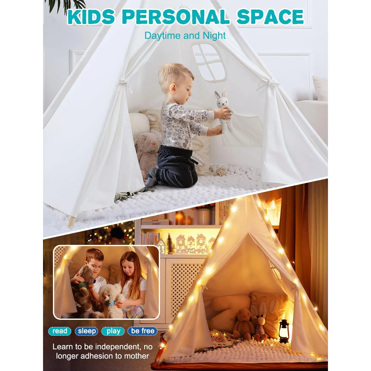 - Safe & High Quality: This tipi tent is made of 100% cotton. The teepee sticks are made of upgraded thickened solid wood poles for sturdiness. The toddler tent is built to the highest standards and is durable enough to ensure long-term use