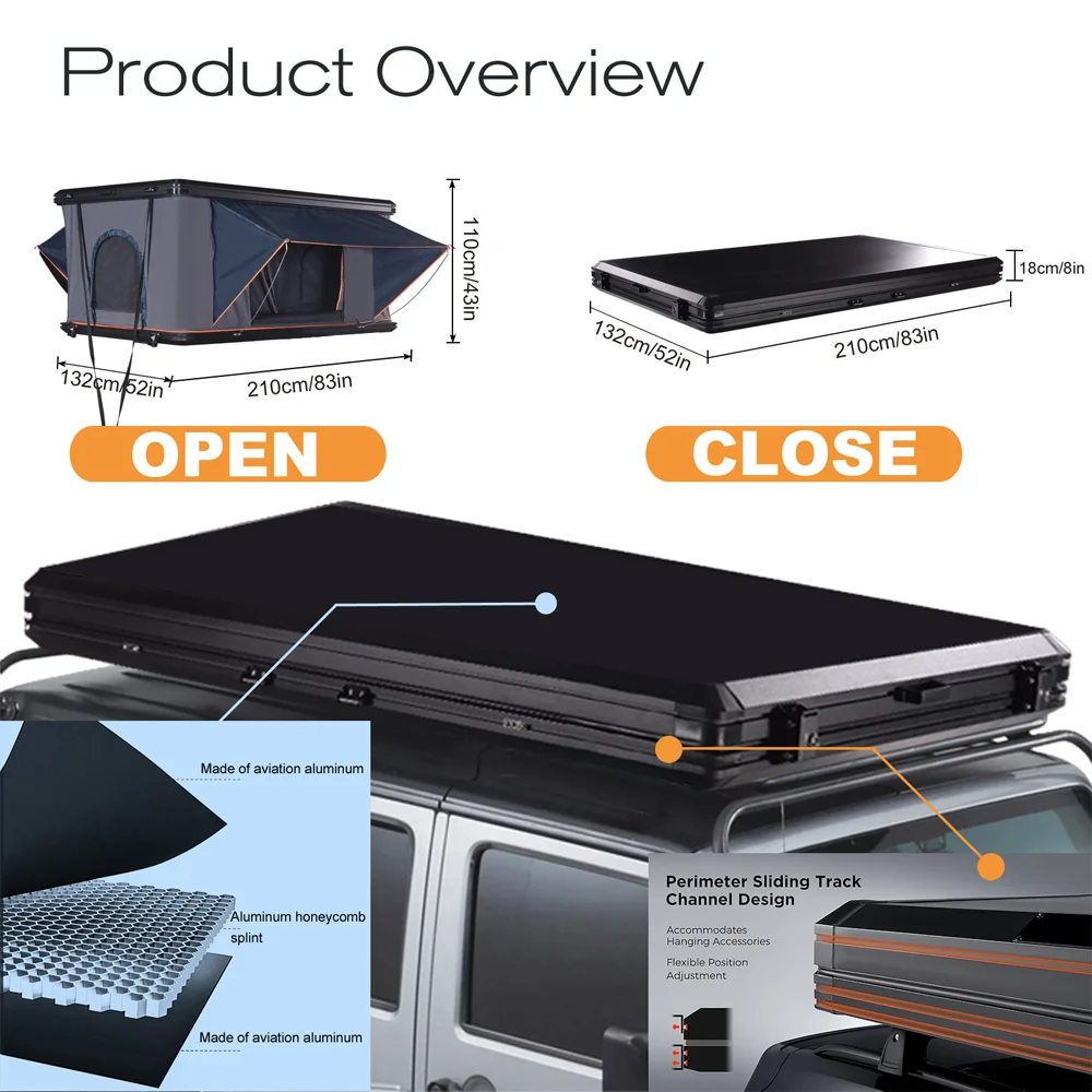 - 【Plenty of Room】:Close:52*83*7 Open:52*83*44 in, Three adjustable Crossbar maximum 49 inch wide roof rack. This SUV tent can fit 2~3 person, 300 KG maximun load, GW 83KG